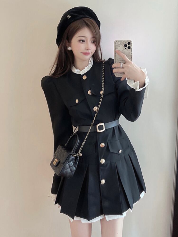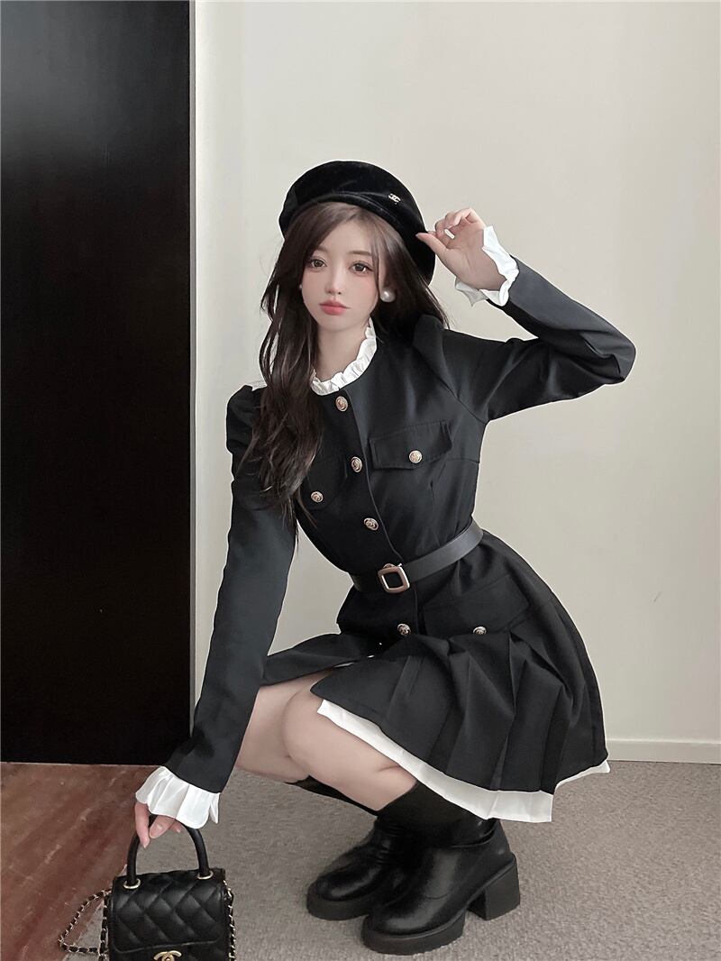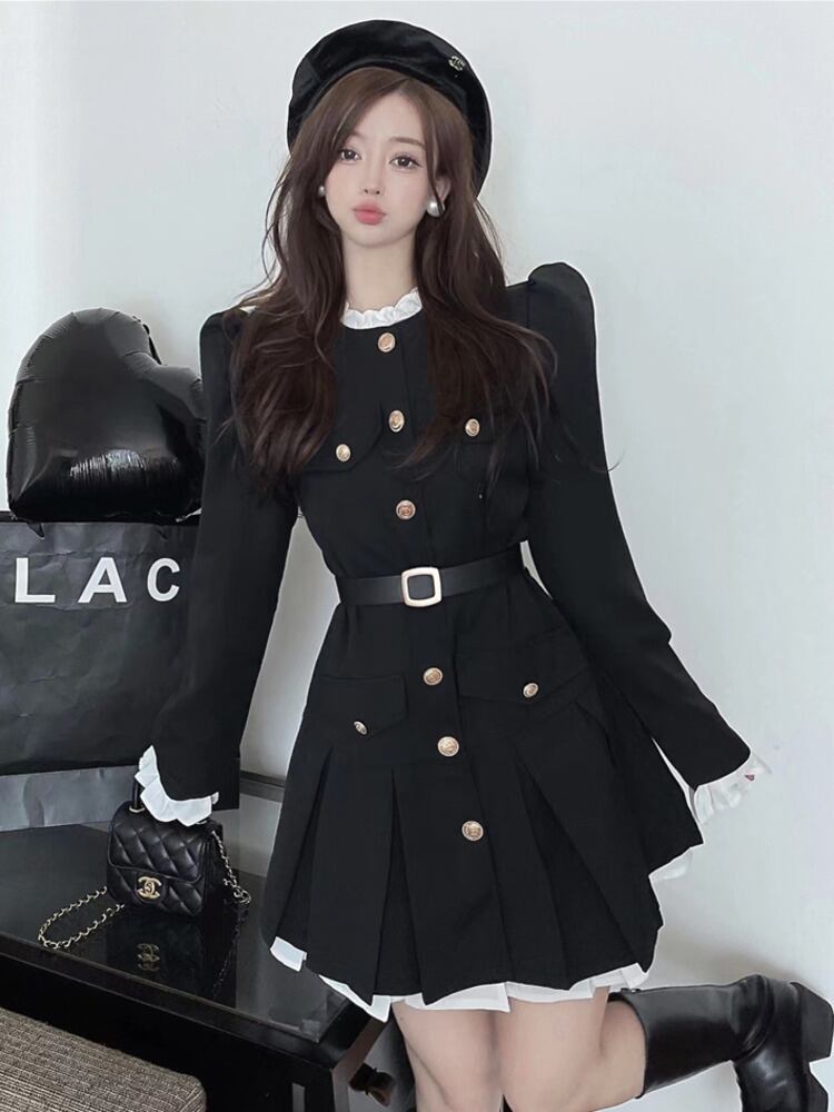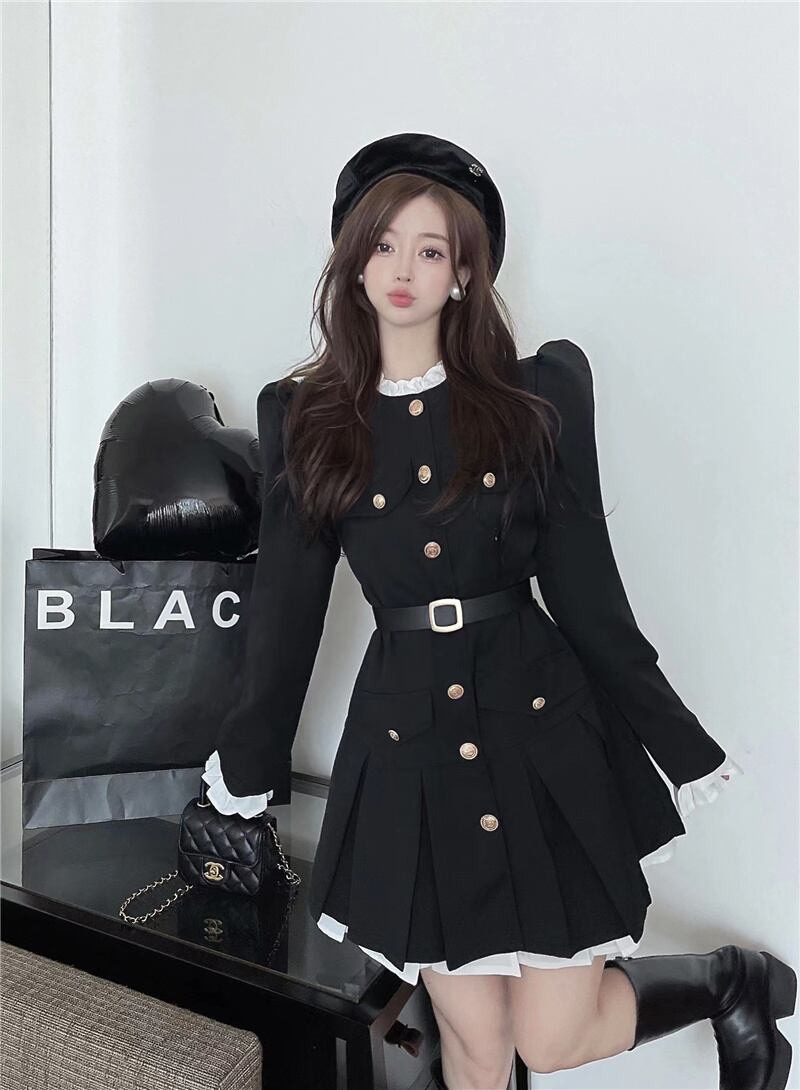 秋冬フレンチスモールフレグランスドレス甘いスリムミニプリーツドレス 大人ガーリー スウィート キュート カジュアル オータム 秋物 ウィンター 冬物