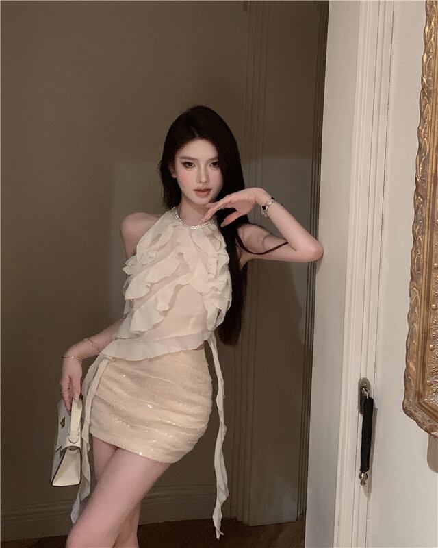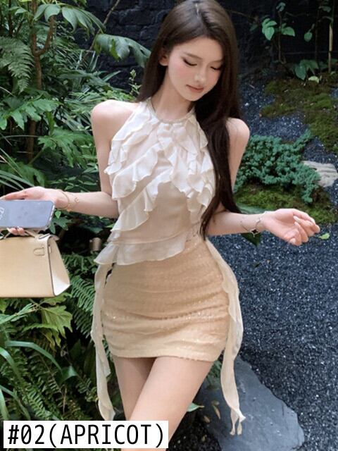 スイートシック 2 点セットノースリーブシフォンブラウストップス + ミニスカートスーツ夏 2 ピース衣装 大人ガーリー スウィート キュート カジュアル サマー 夏物