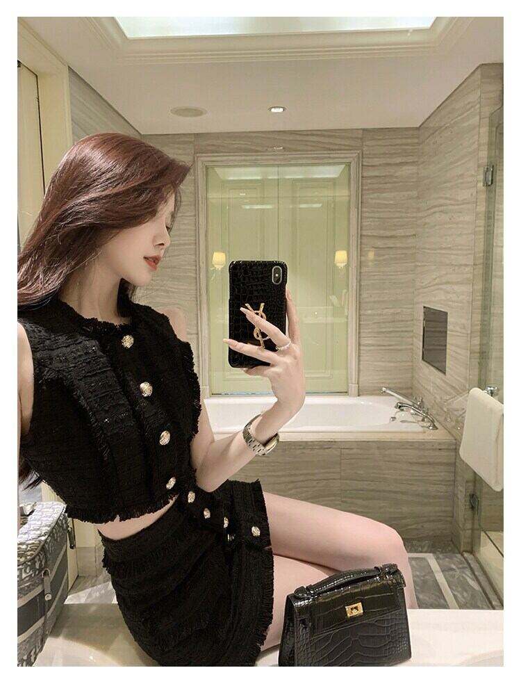 ストリートフレンチ小さ香りツーピースセットクロップトップ + ミニスカートスーツ Conjuntos Cortos 2 点セット衣装
