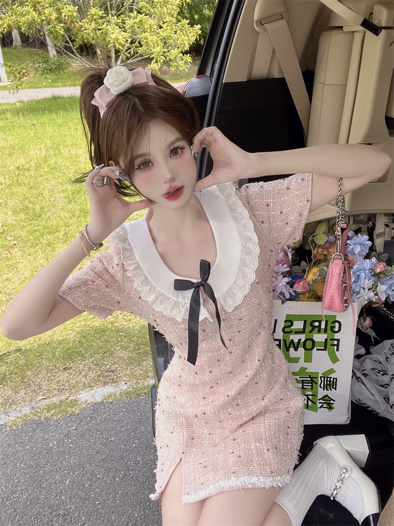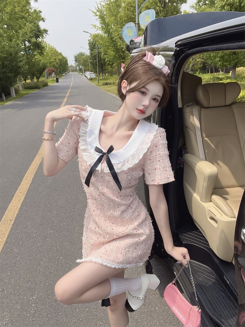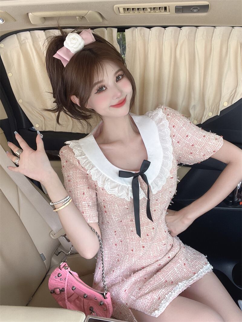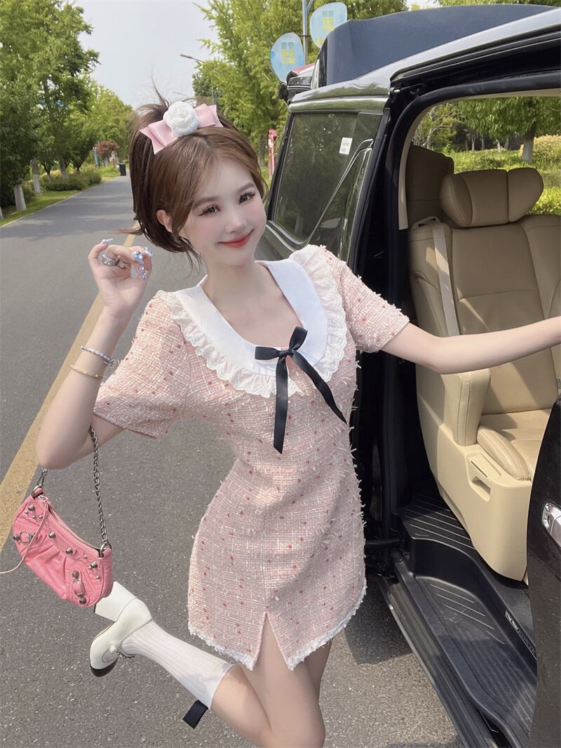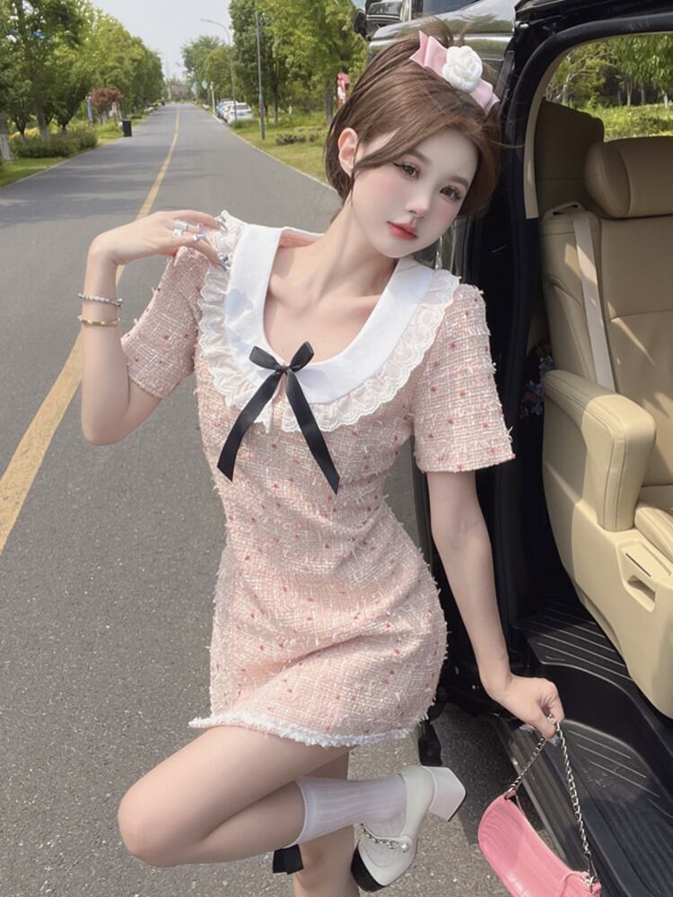 甘いサマードレス小さ香りツイードドレスフレンチパーティードレスローブ Vestidos 大人ガーリー スウィート キュート カジュアル 夏物