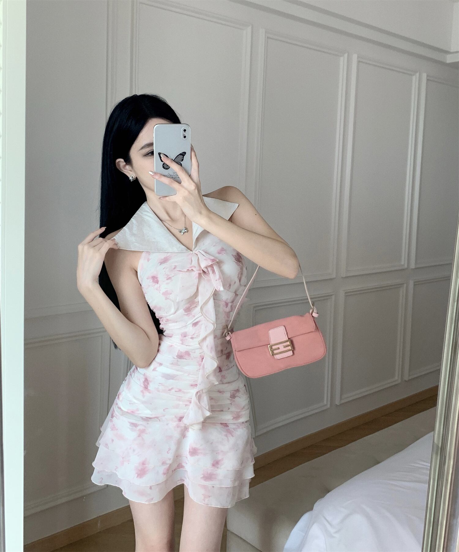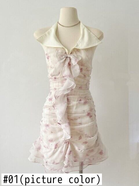 妖精サマードレス花柄ローブスウィートガールスリム背中開いたセクシードレスビーチホリデー Vestidos デ 大人ガーリー キュート カジュアル 夏物