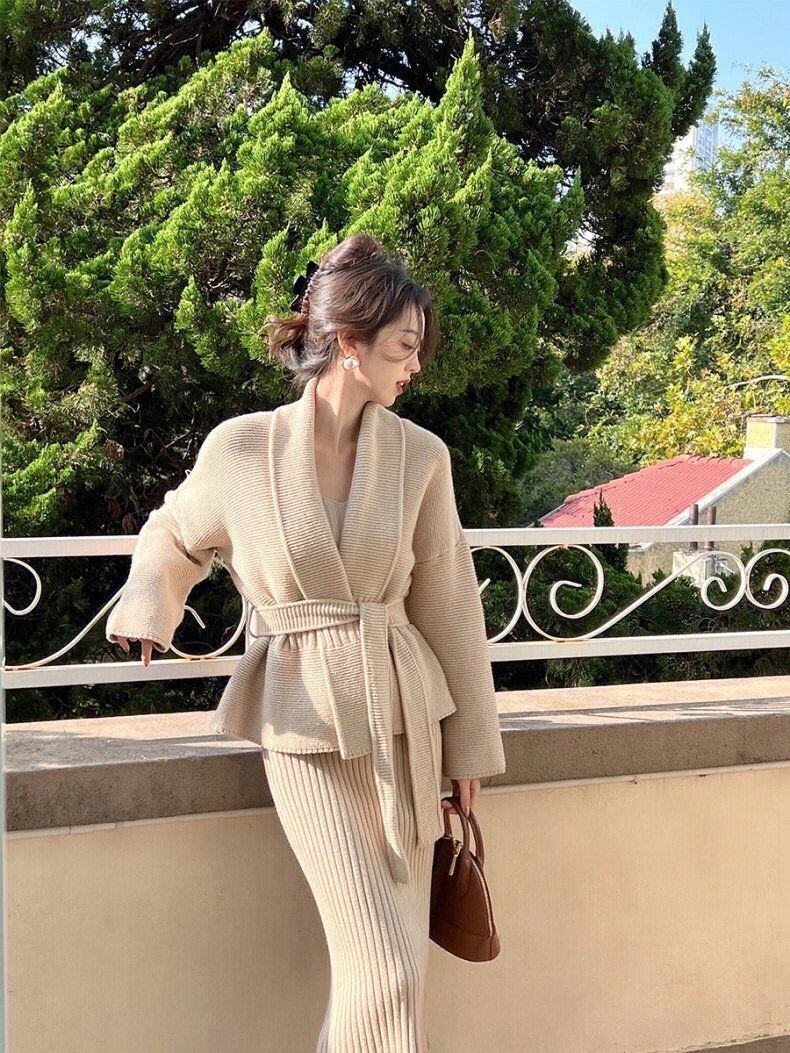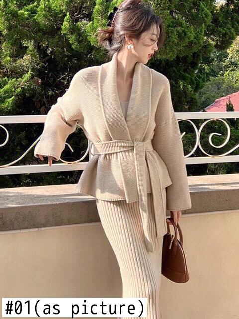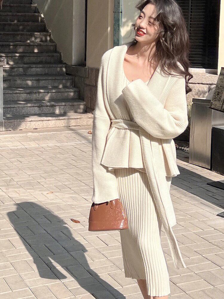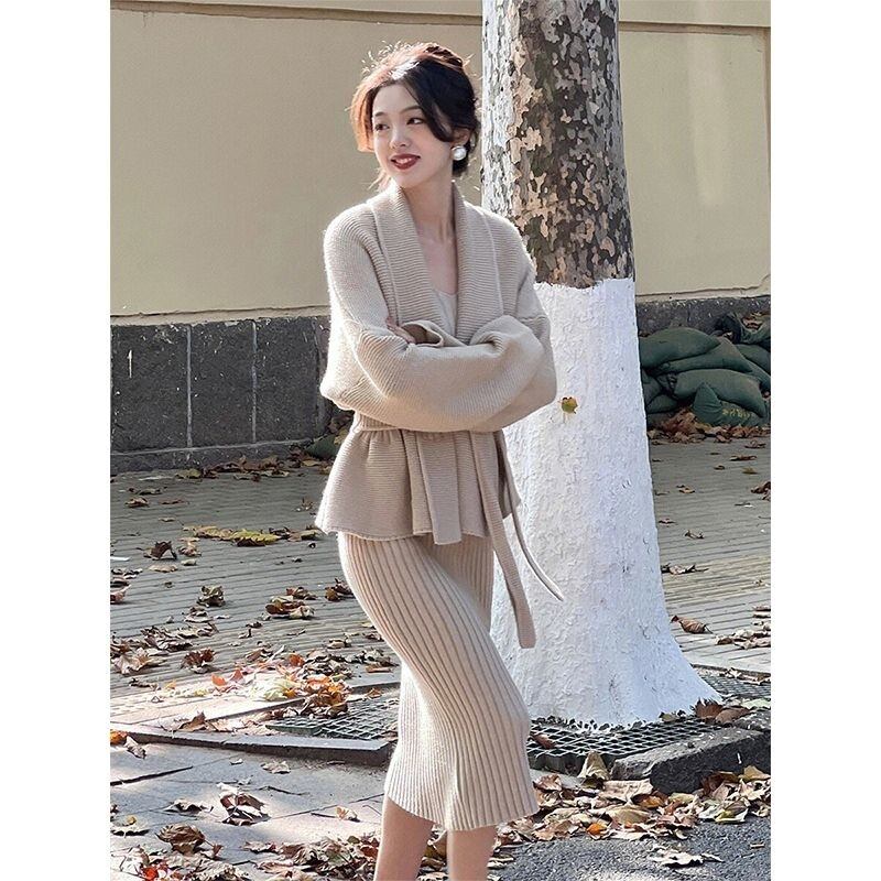 冬韓国ファッションカーディガンドレスセーター 2 個セット衣装ジャージニットプルオーバー conjuntos ウィンター 冬物