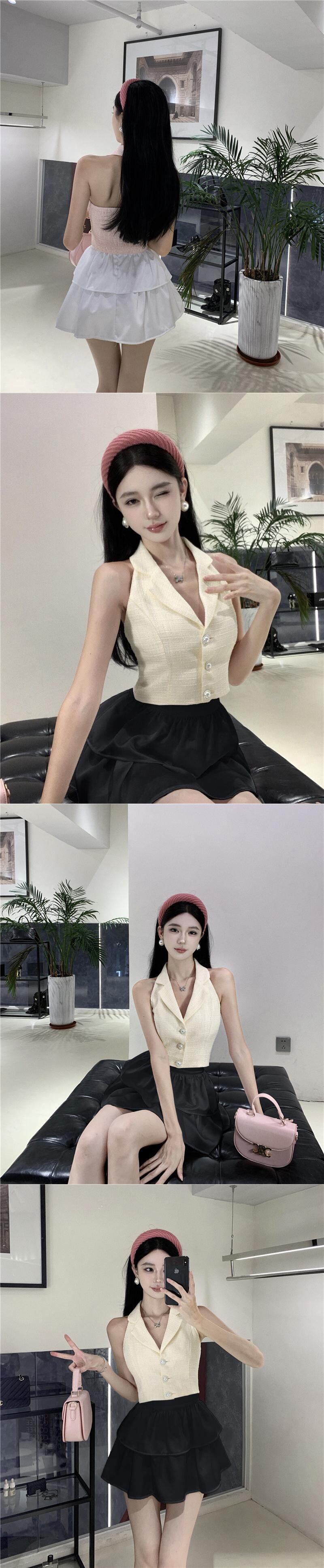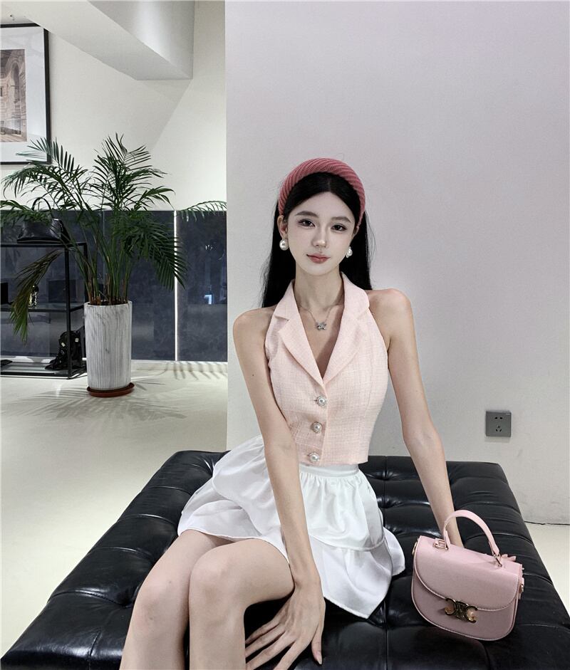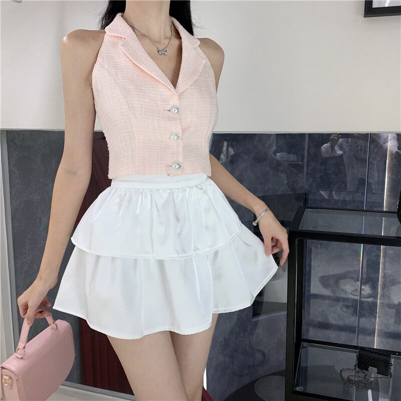 夏フレンチ 2 点セットベストクロップトップ + ウエストミニスカートスーツ小さ香り 2 点セット サマー 夏物