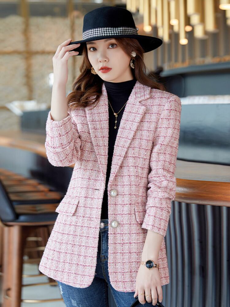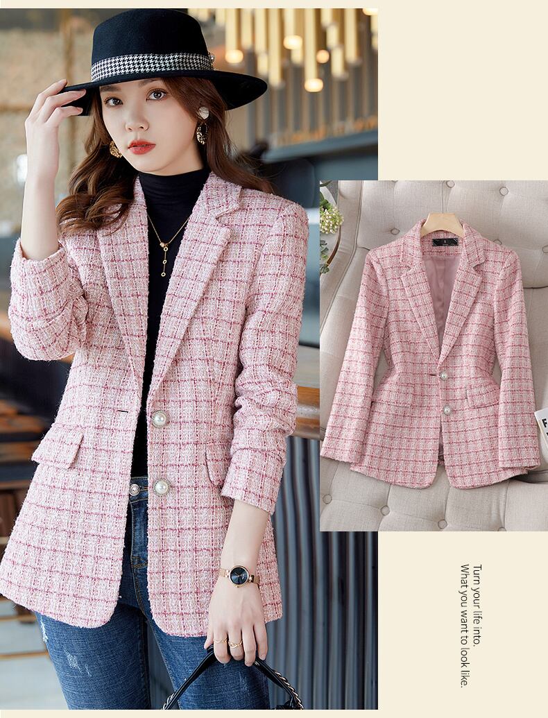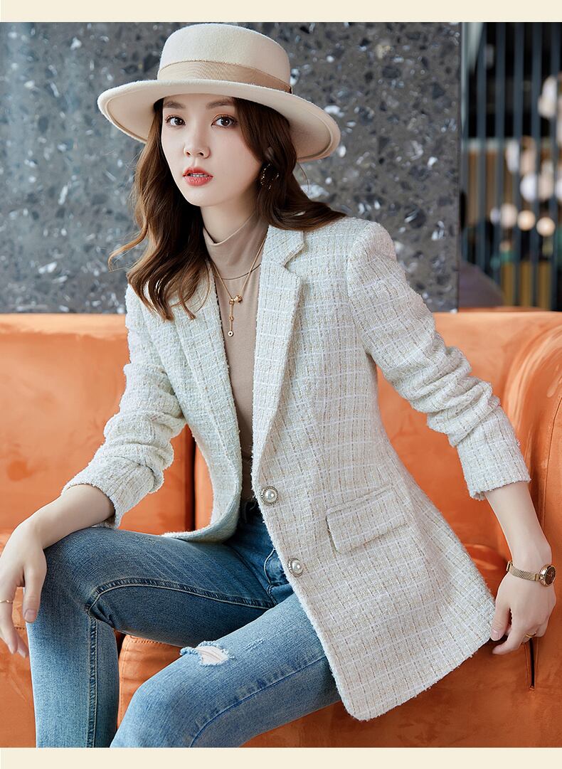 OL ブレザー コート 秋冬 シングルブレスト ツイード ジャケット レディース スリム スーツ アウター ウィンター 冬物