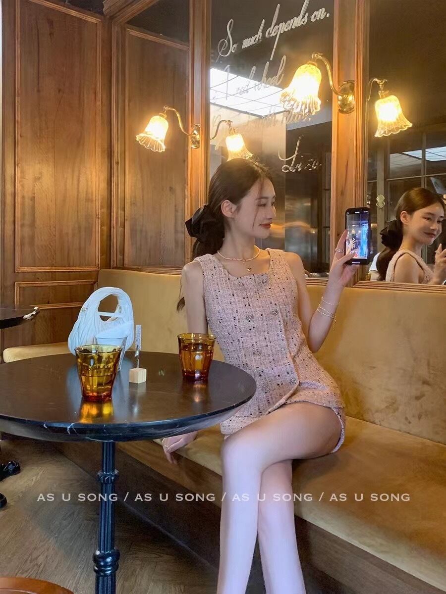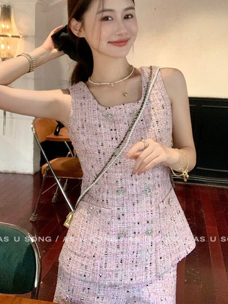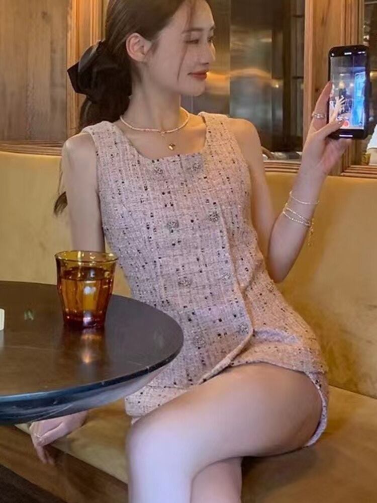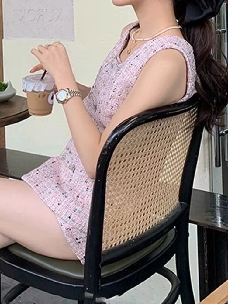 フランス小さフレグランスツイード 2 ピースパンツセット甘いノースリーブベストジャケットコート + ショートセット 大人ガーリー スウィート キュート カジュアル