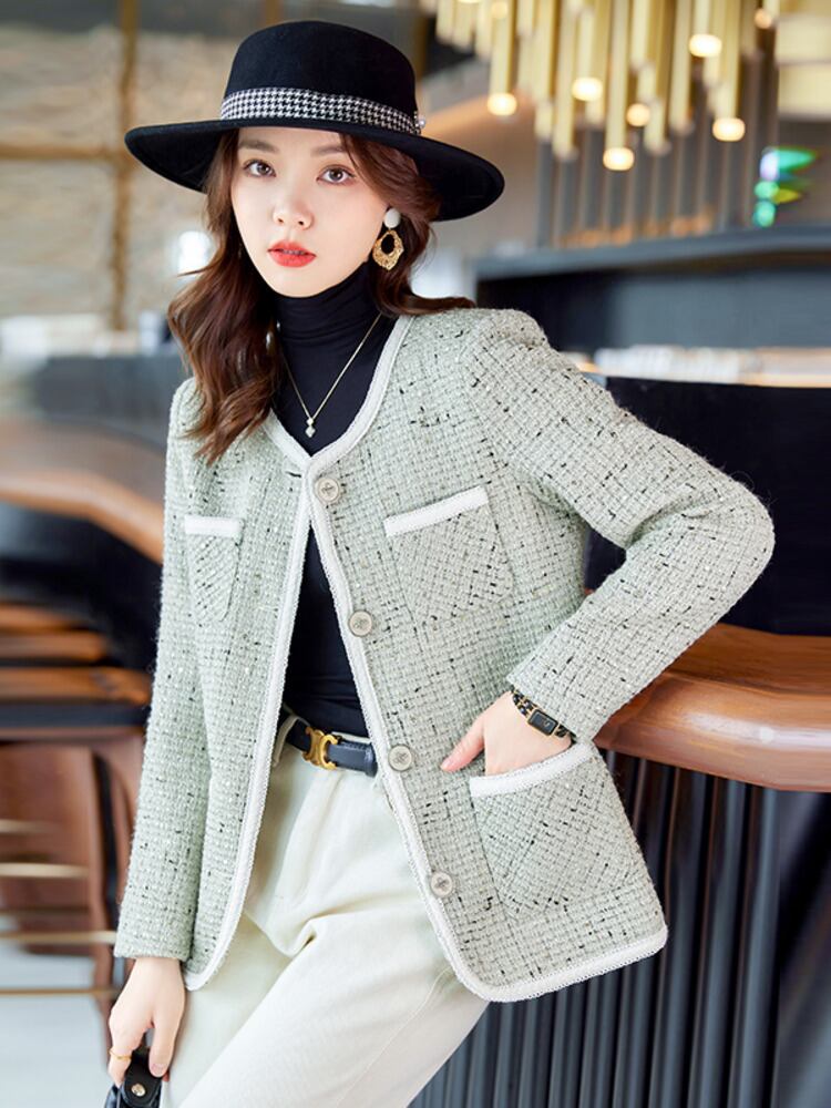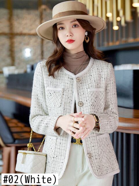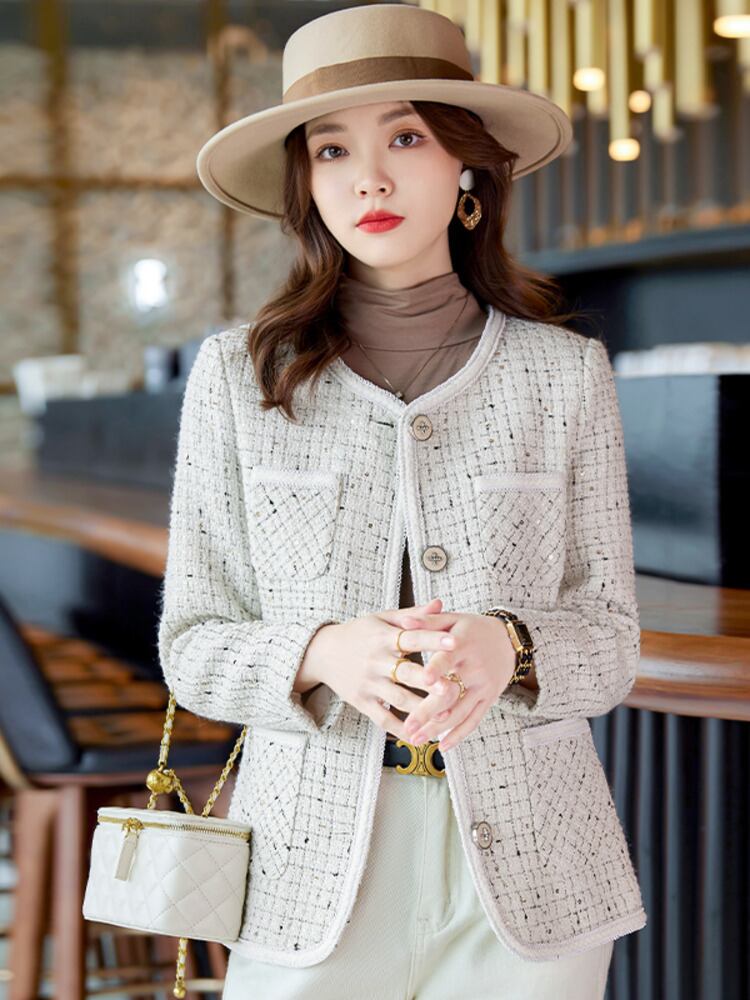 フランス小さフレグランスツイードブレザーコート秋冬 OL ウールスーツジャケット生き抜く Casacos ウィンター 冬物