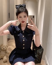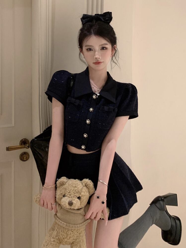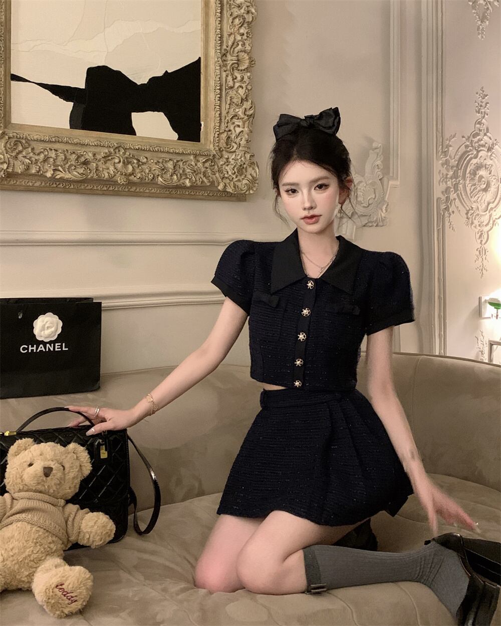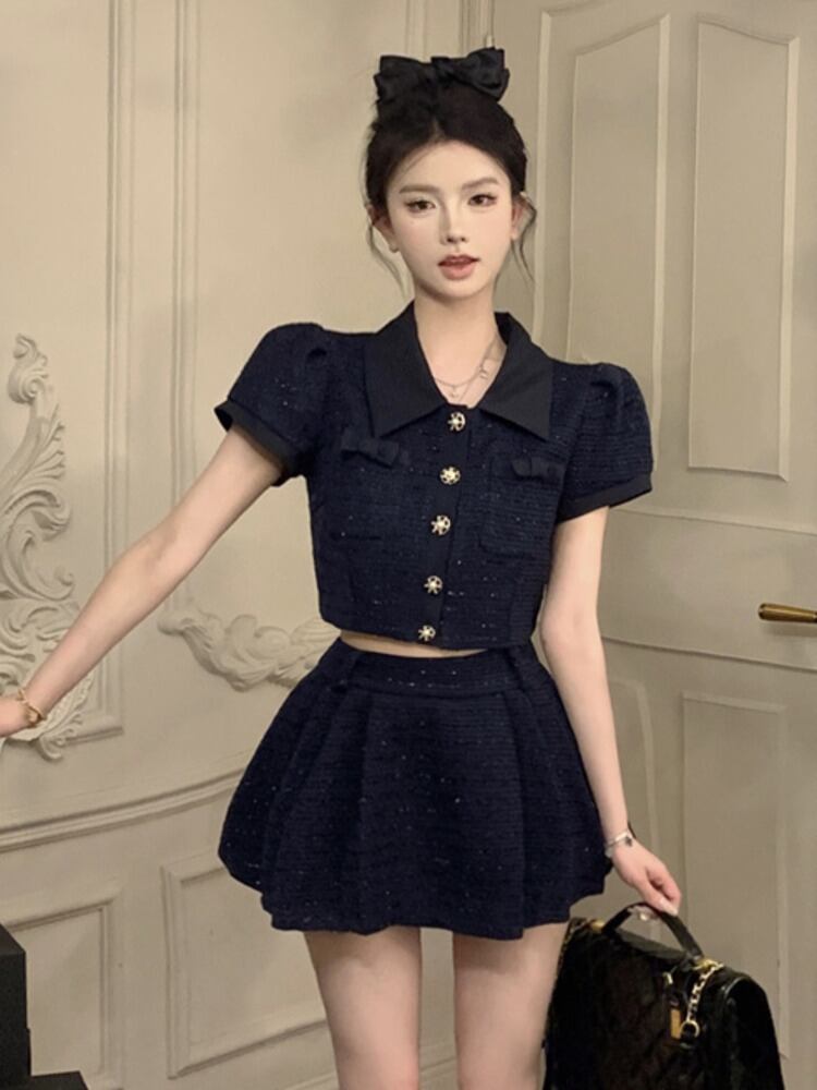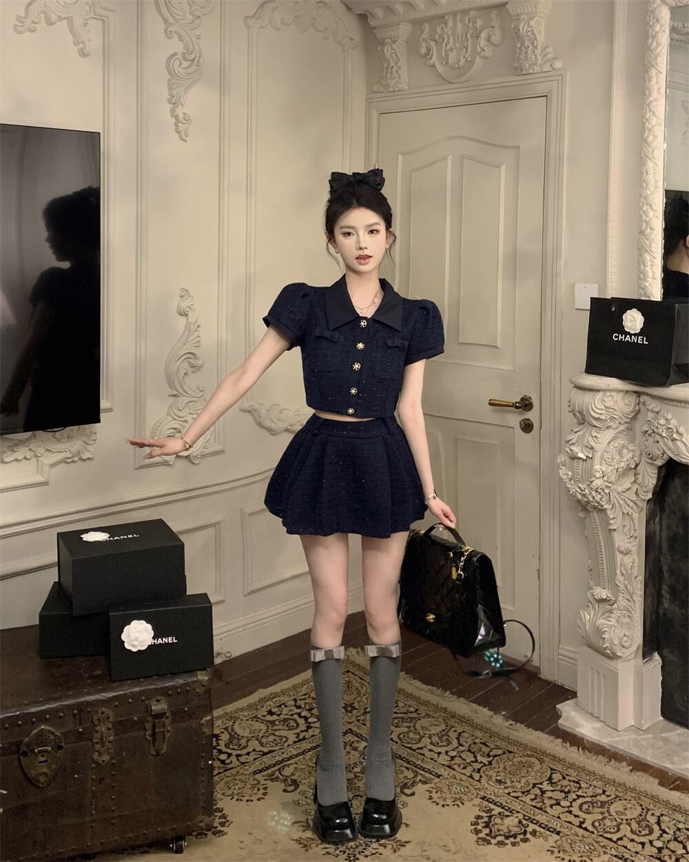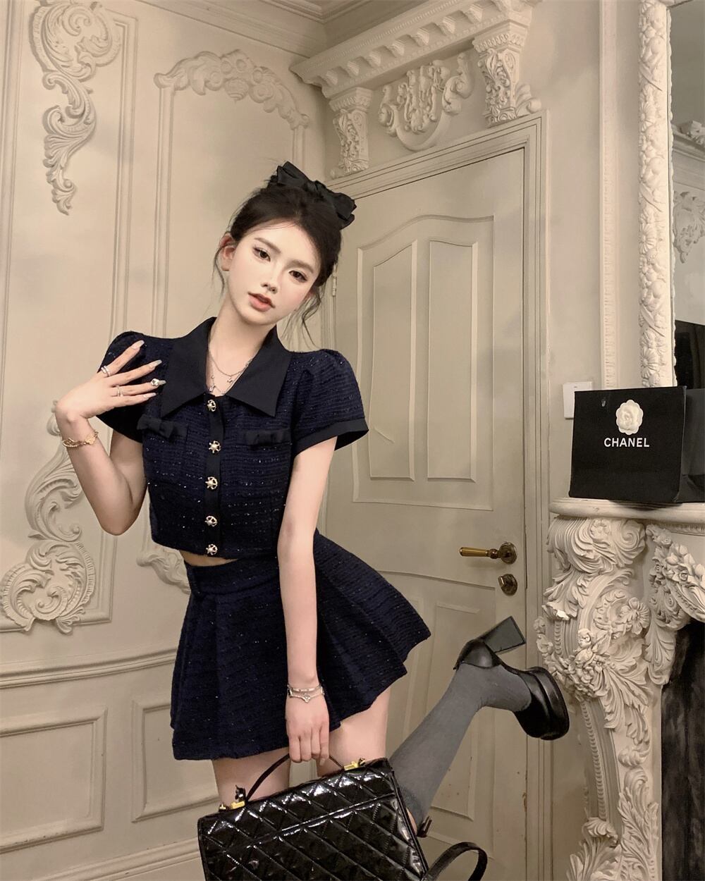 フランス高級小さ香りツイード 2 点セットジャケットコート + プリーツスカートスーツ夏 2 点セット サマー 夏物