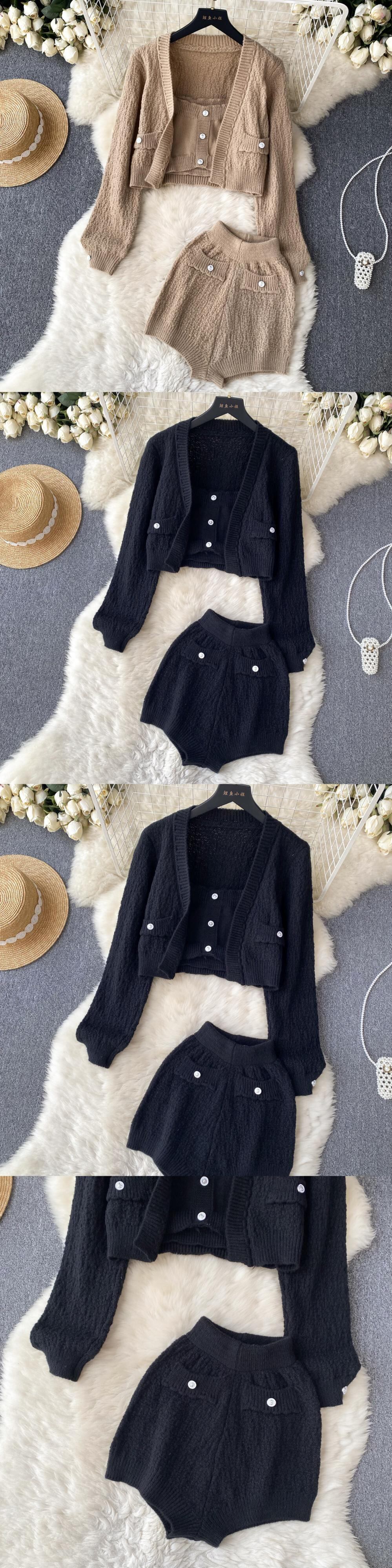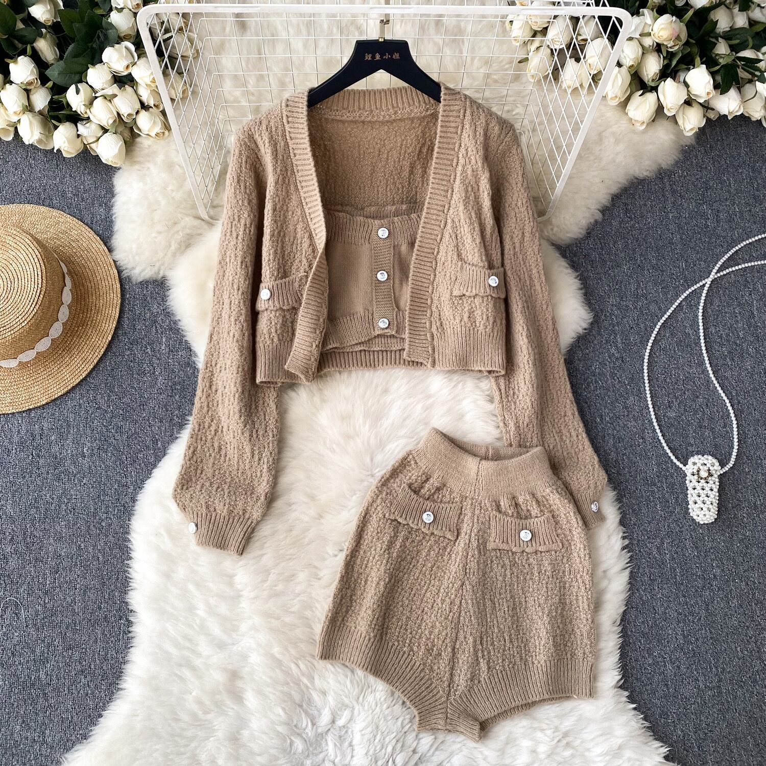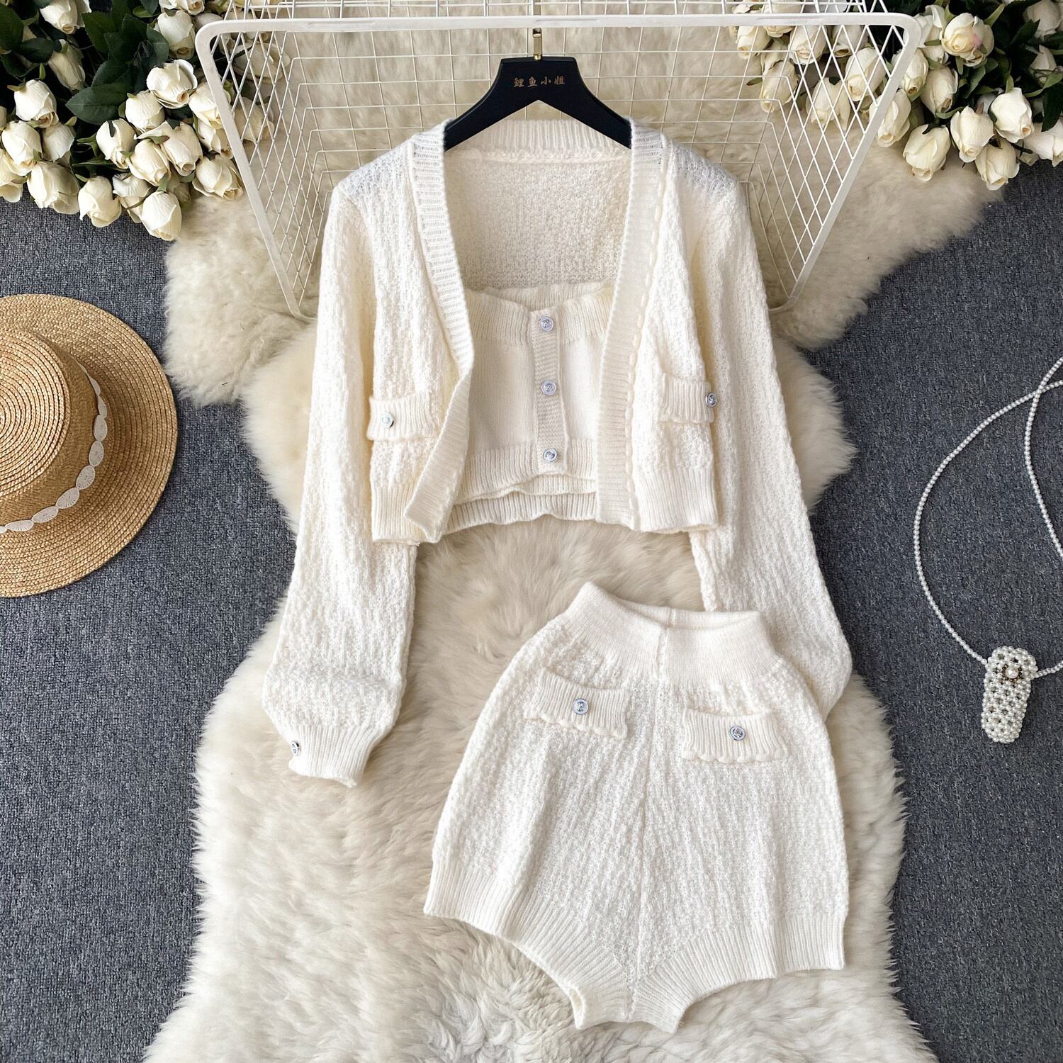 甘い 3 点セットセーターカーディガン + キャミソール + ショートセットニット 3 本スーツアンサンブル Conjuntos Feminino 大人ガーリー スウィート キュート カジュアル