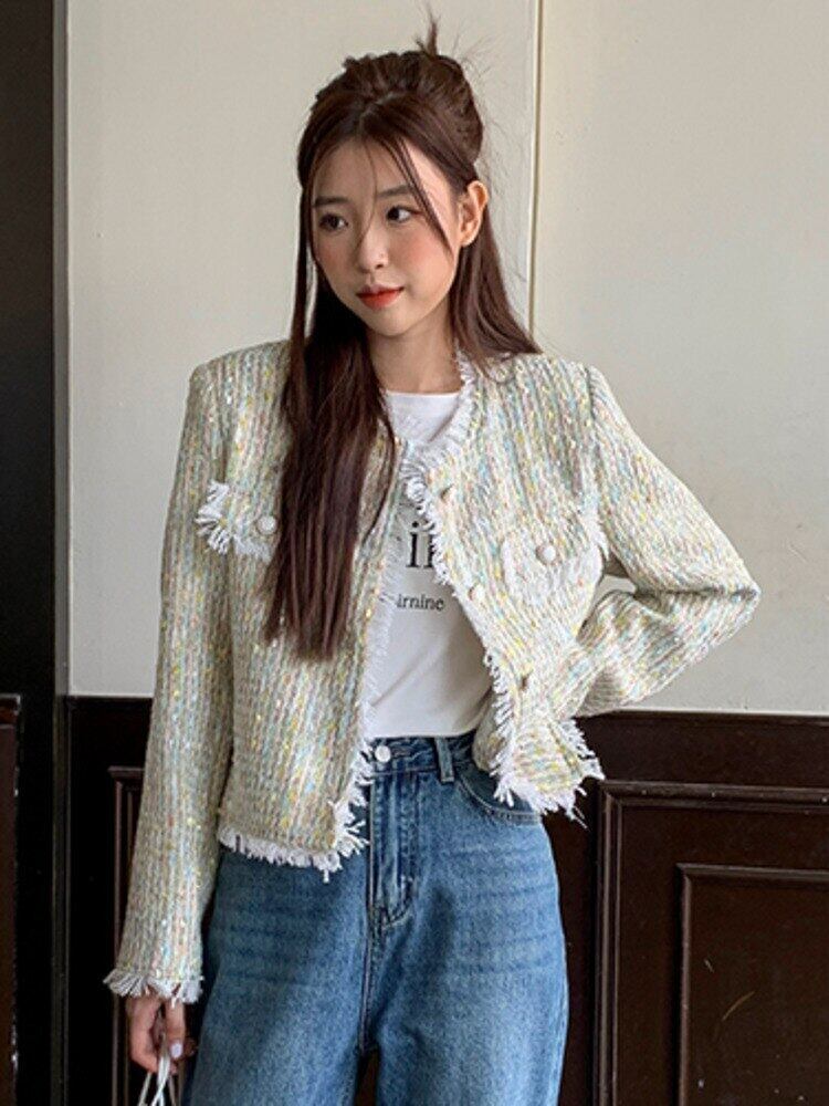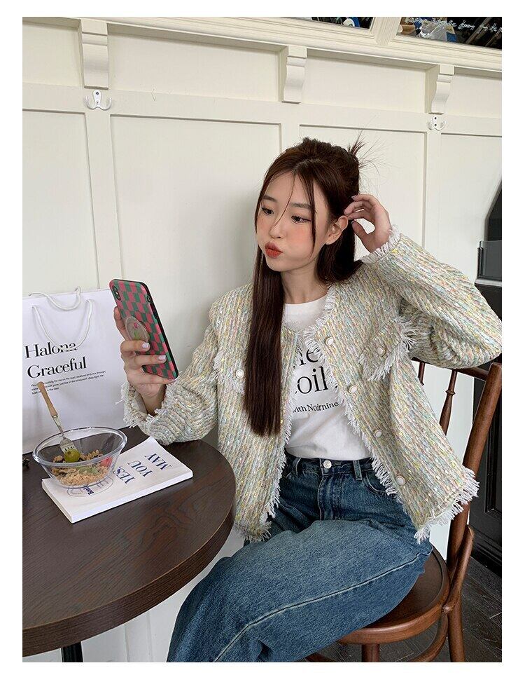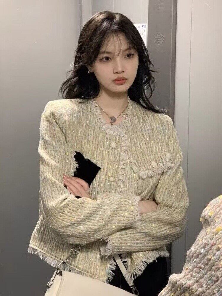 フレンチスモールフレグランスツイードジャケット秋冬フライドストリートテルショートコートアウター ウィンター 冬物