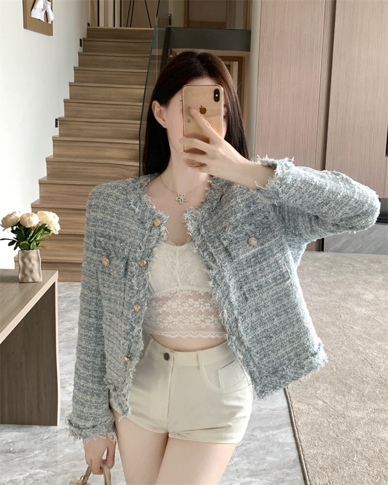 フレンチツイードジャケットコート秋冬チェック柄テルスリムウールジャケット生き抜く Casaco Jaqueta ウィンター 冬物