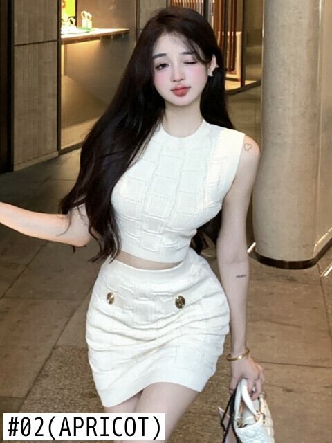 小さ香りニット 2 点セットクロップトップ + スカートスーツジャカードセーター 2 ピース衣装