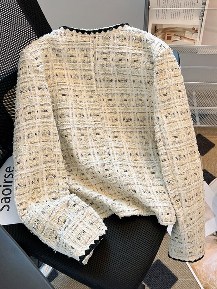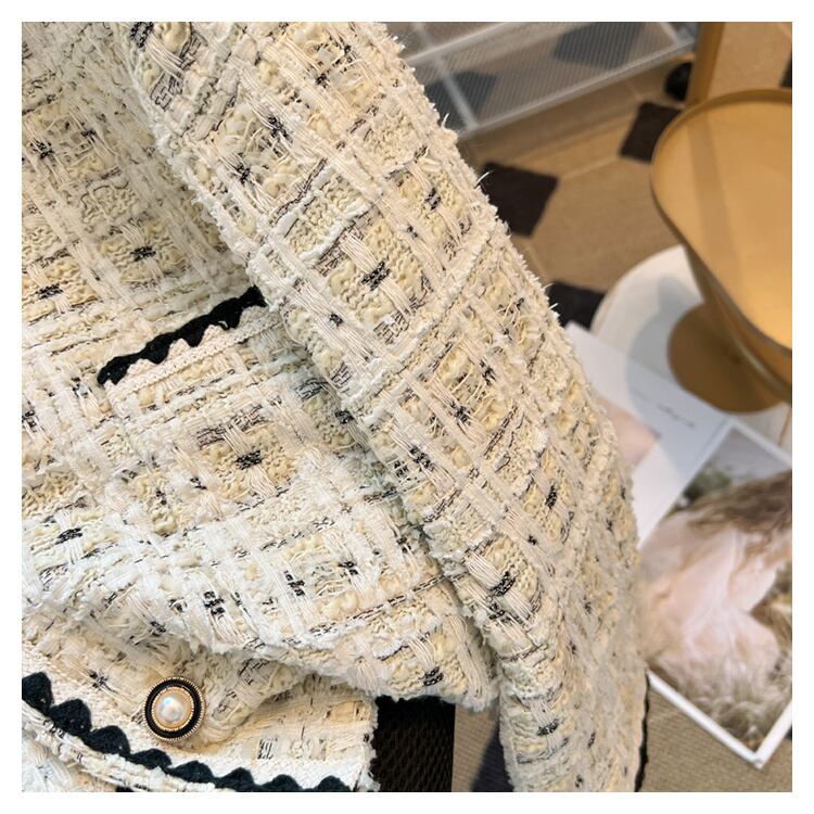 フランス高級小さ香りツイードジャケット秋冬フライドストリートコートチェック柄生き抜く Casaco オータム 秋物 ウィンター 冬物