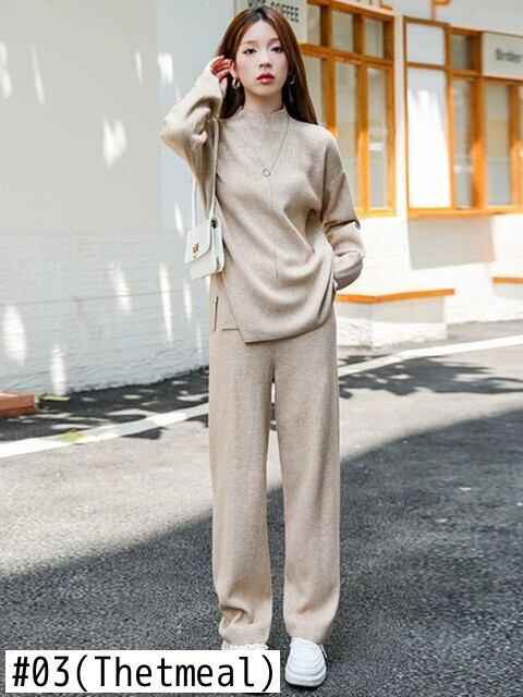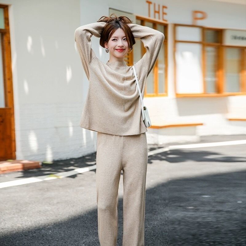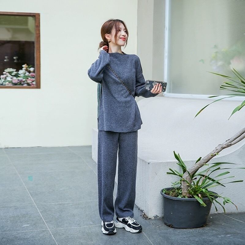 冬秋トップスパンツセットセータートラックスーツ 2 ピースセット衣装ジャージニットプルオーバー conjuntos オータム 秋物 ウィンター 冬物
