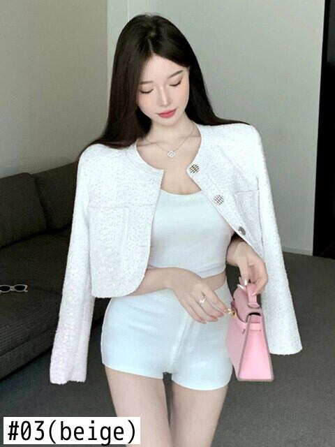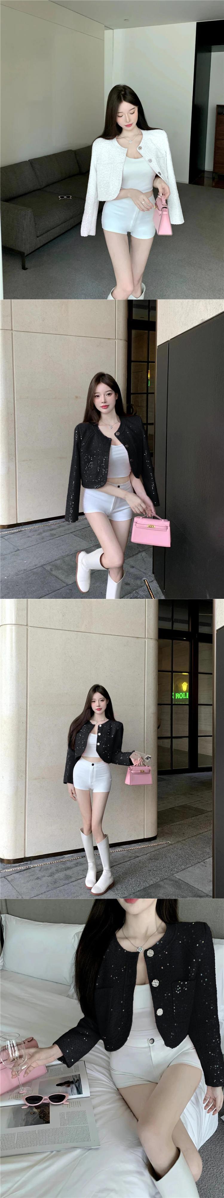 秋冬気質ツイードジャケットフレンチ高級スパンコール小さ香りコートショートアウター オータム 秋物 ウィンター 冬物