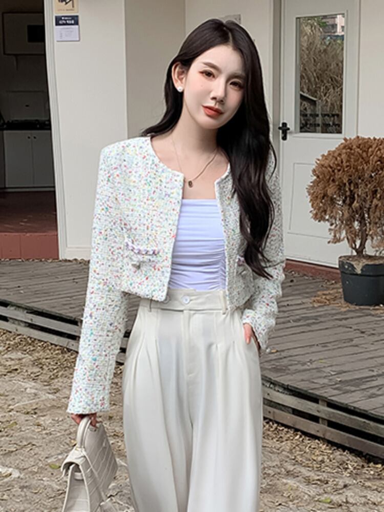ストリートフレンチラグジュアリースモールフレグランスツイードジャケットウールショートコート秋jaqueta