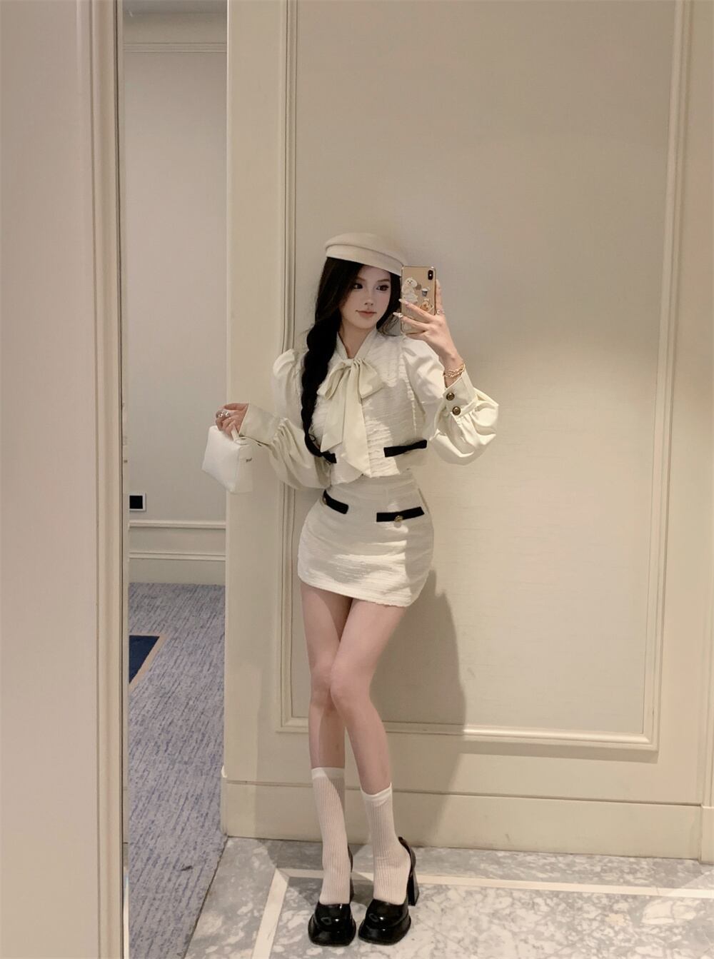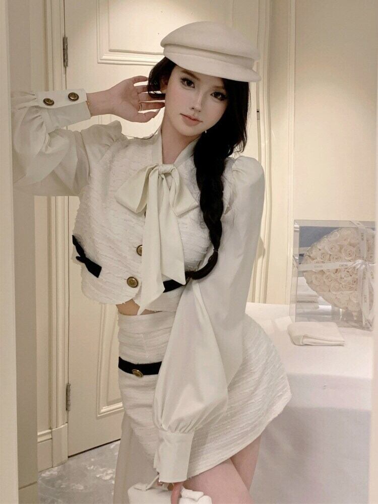 ストリートフレンチ小さ香りツーピースセットシャツトップ + スカートスーツ Conjuntos Cortos 甘い 2 点セット衣装 大人ガーリー スウィート キュート カジュアル