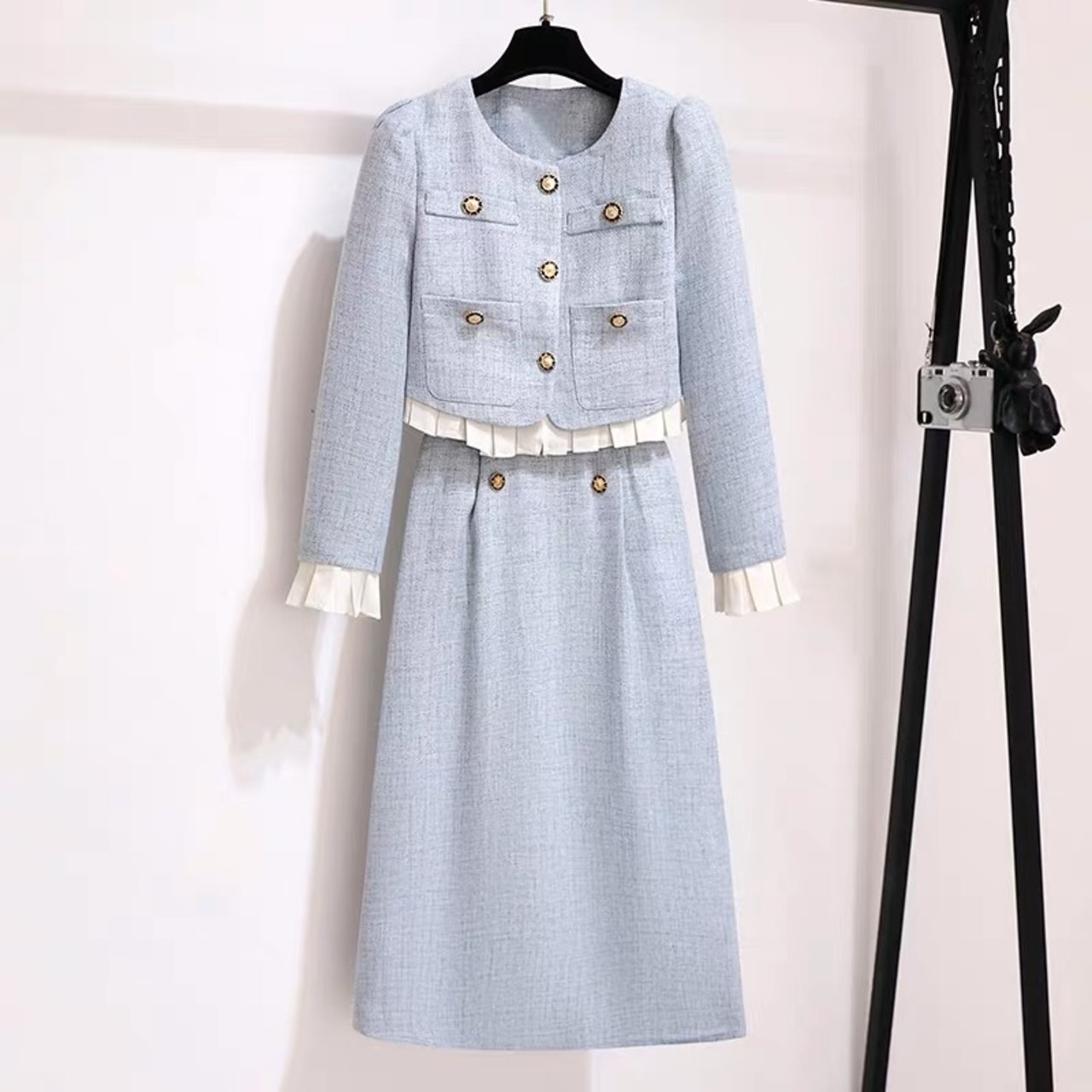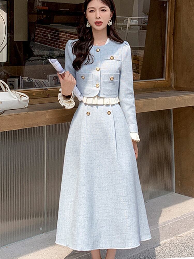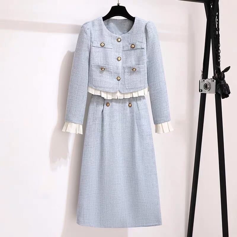 秋冬ツーピースセットジャケットコート + ロングスカート 2 点セット衣装 conjuntos femininos エレガンテス エレガント ウィンター 冬物