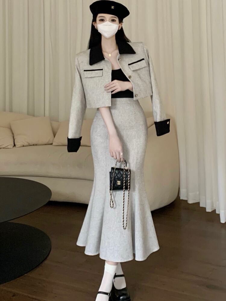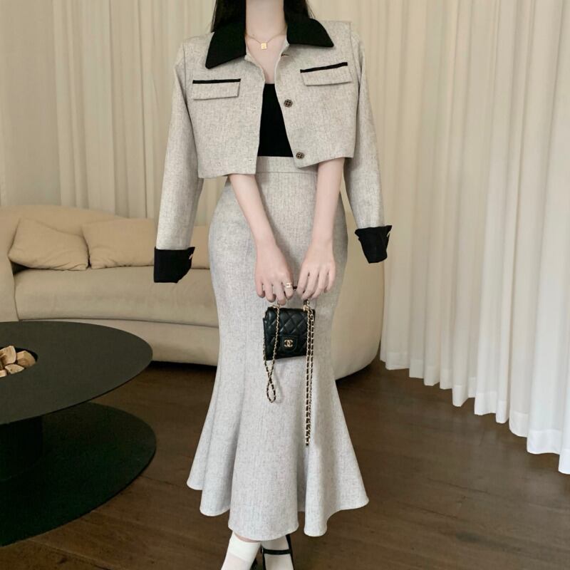 秋冬ツーピースセットジャケットコート + ロングスカート 2 点セット衣装 conjuntos femininos エレガンテス エレガント オータム 秋物 ウィンター 冬物