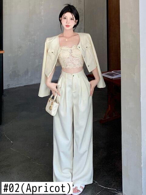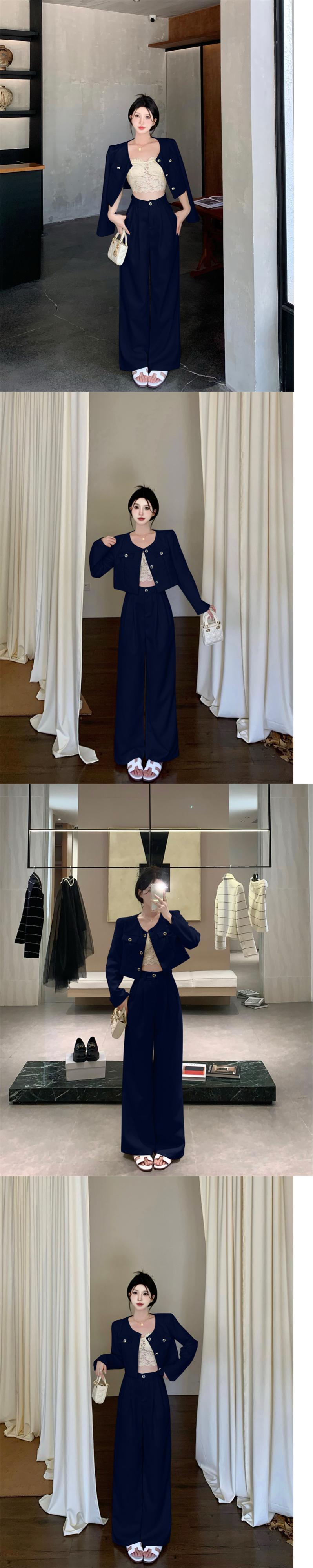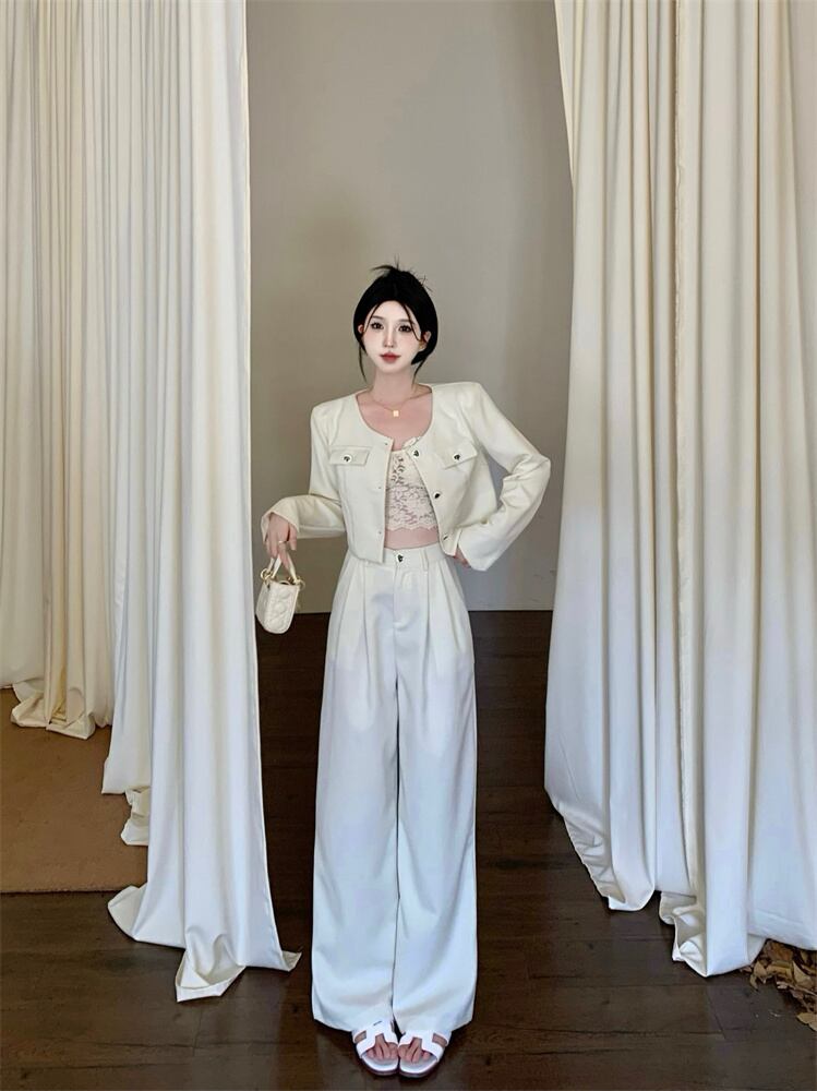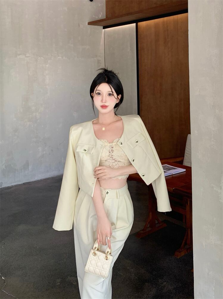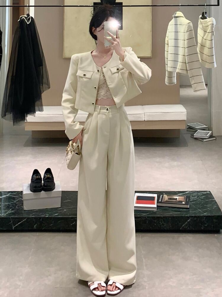 秋冬スモールフレグランスツーピースセットジャケットコート+ワイドレッグパンツセットOL 2点衣装 オータム 秋物 ウィンター 冬物 ワイドパンツ