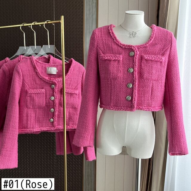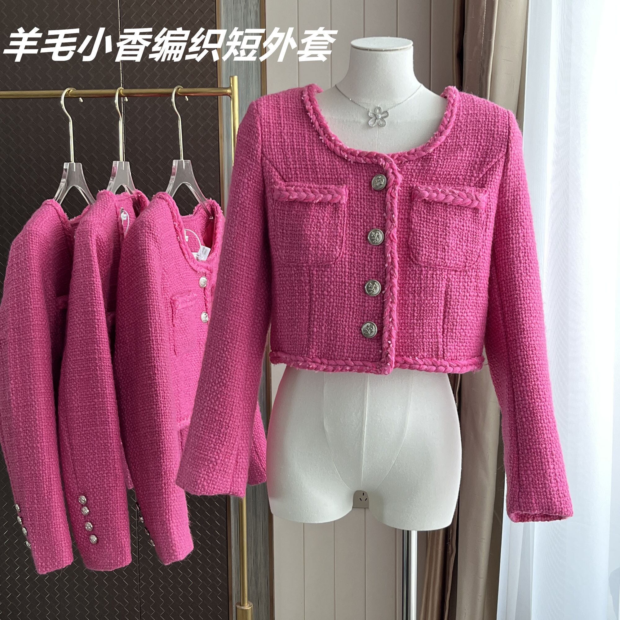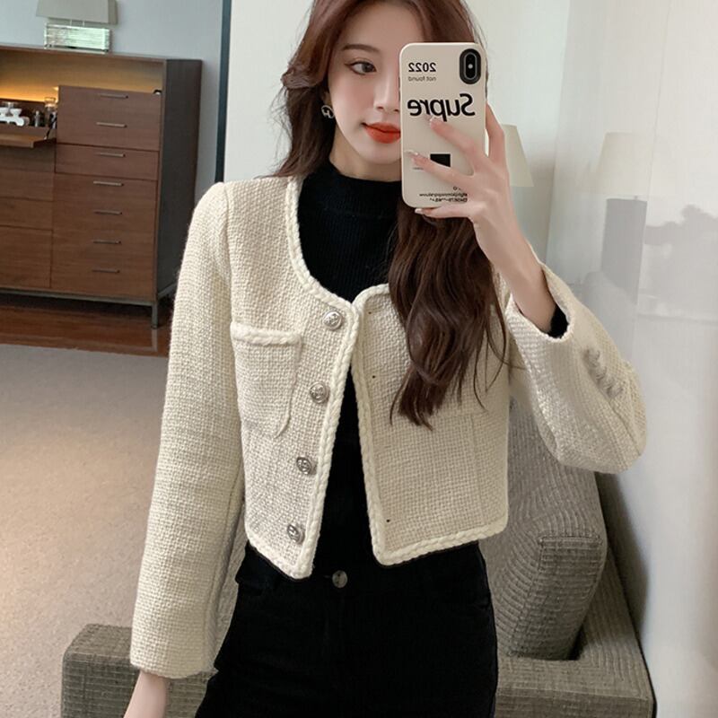 秋冬フランス小さ香りツイードジャケット甘いウールショートコート Casaco Jaqueta 大人ガーリー スウィート キュート カジュアル オータム 秋物 ウィンター 冬物