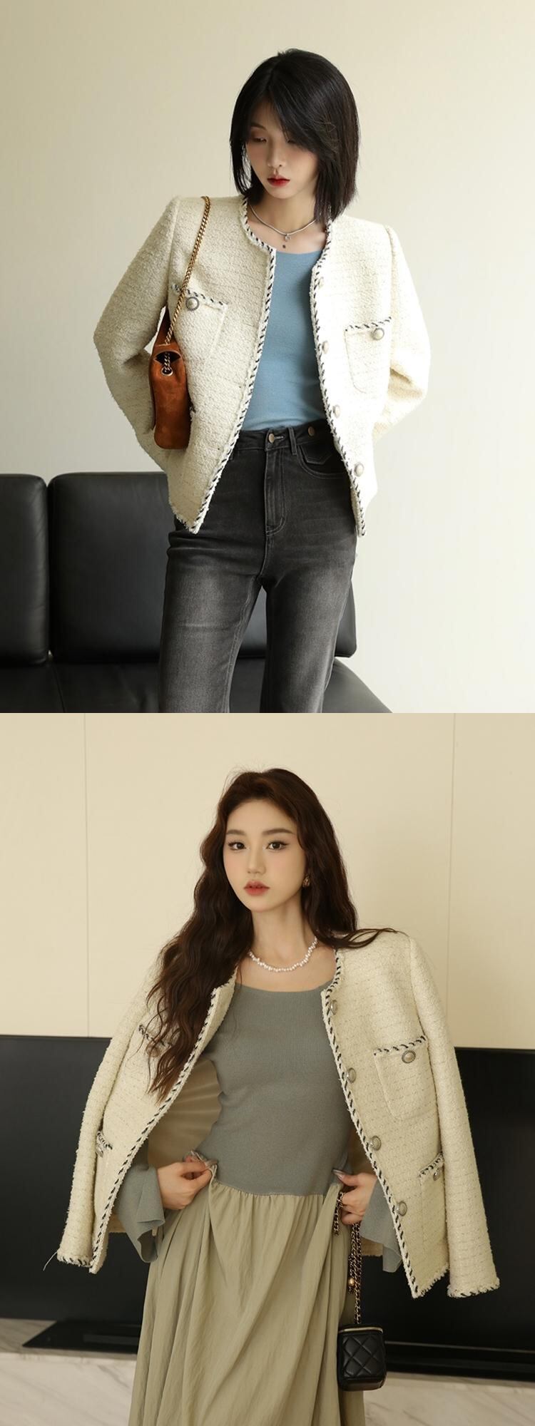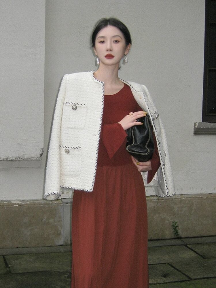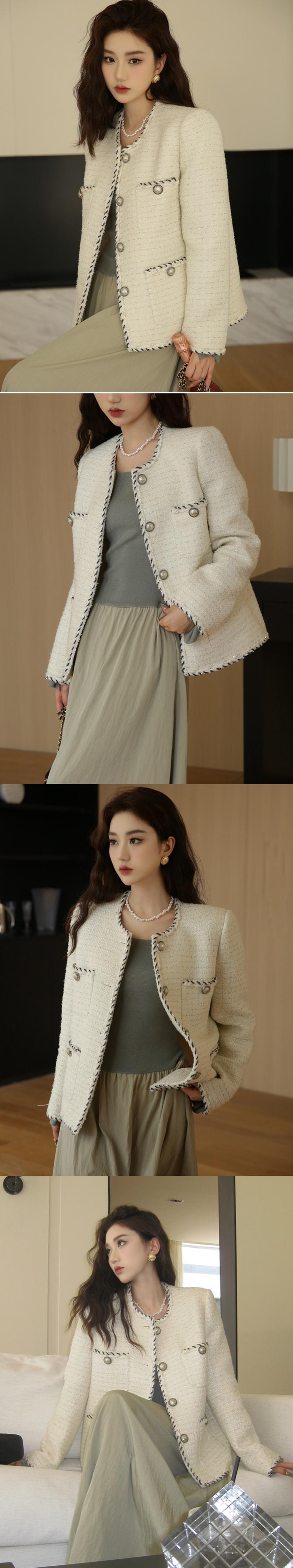 フランス高級スモールフレグランスツイードジャケット秋冬ルーズウールコート オータム 秋物 ウィンター 冬物