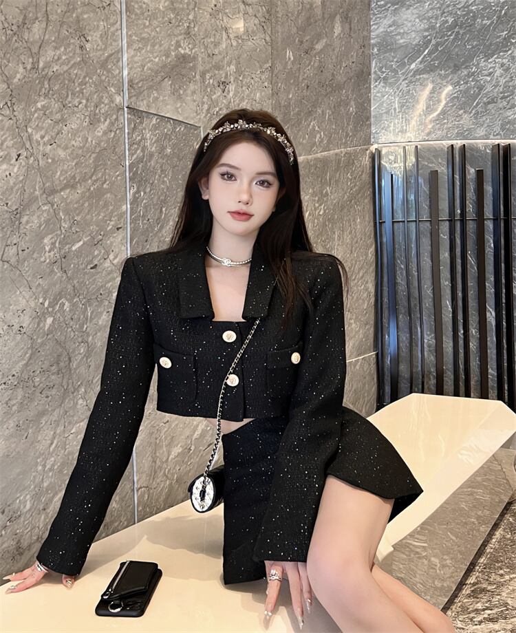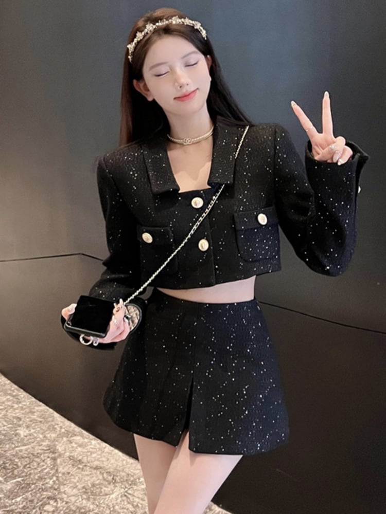 フレンチツイードツーピースパンツセットショートジャケットコート+ショートセット秋冬2ピース衣装 オータム 秋物 ウィンター 冬物
