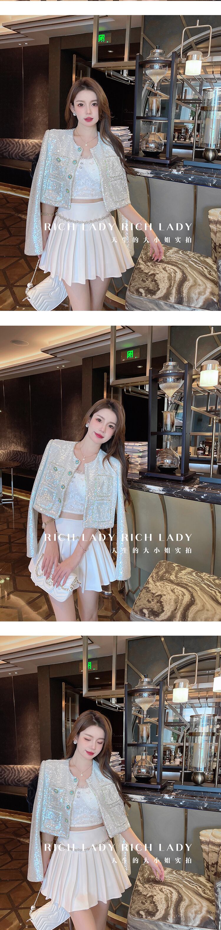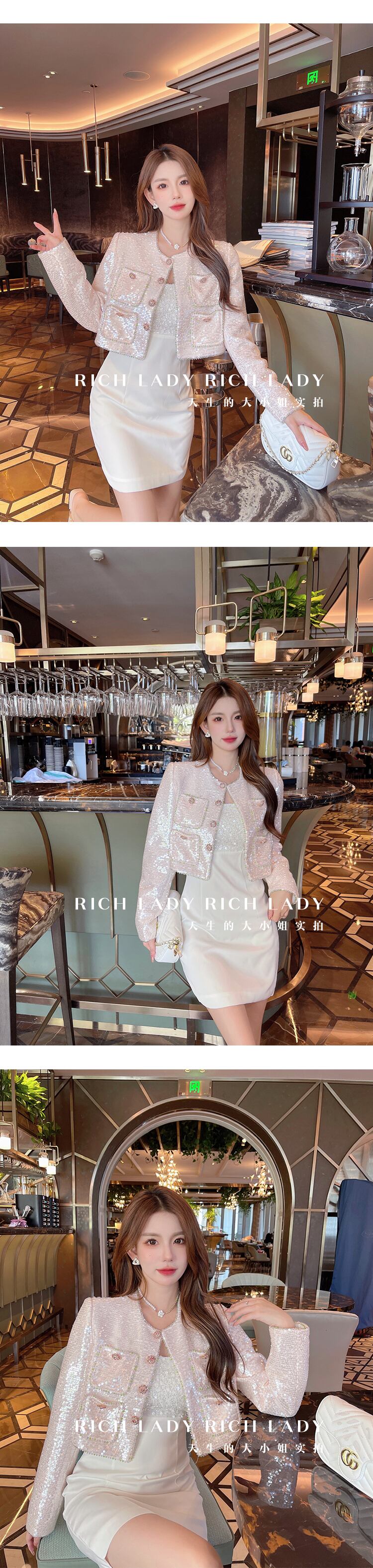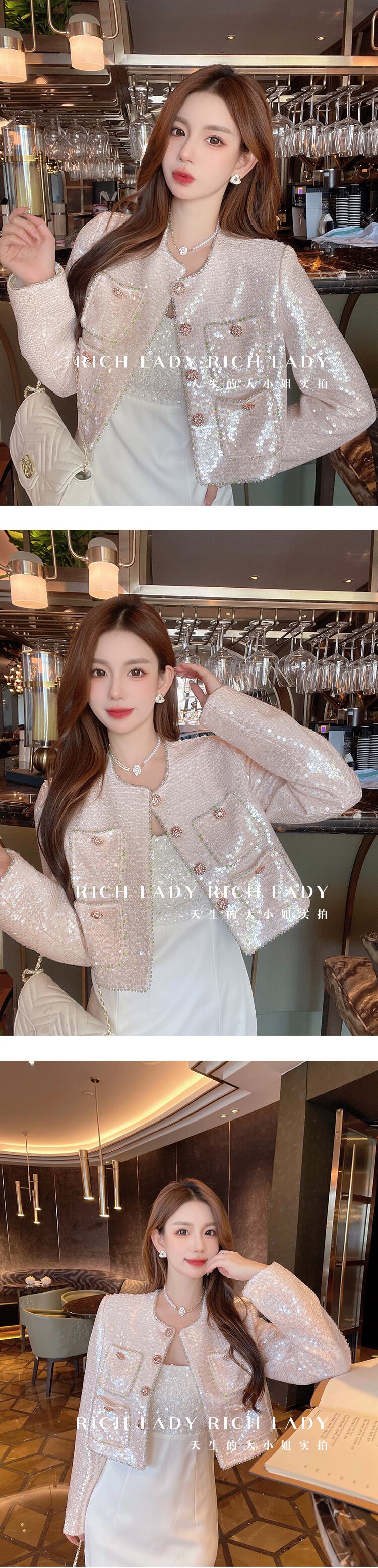 フランス高級小さ香りショートジャケット秋 Y2K スパンコールコート甘い上着 Jaqueta 大人ガーリー スウィート キュート カジュアル オータム 秋物