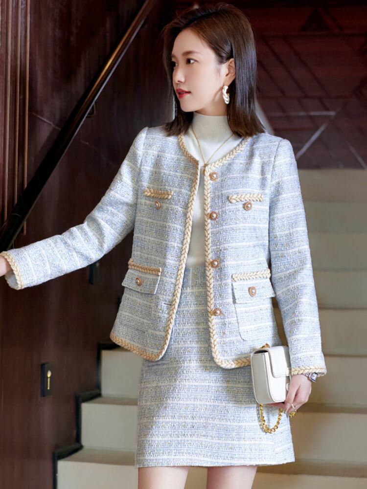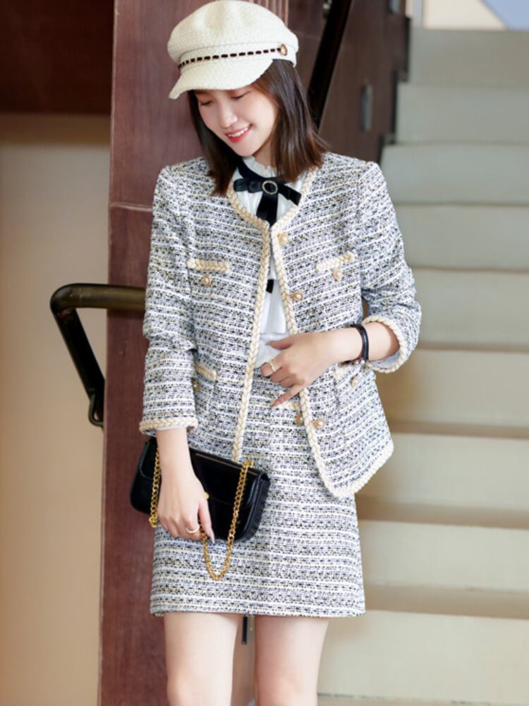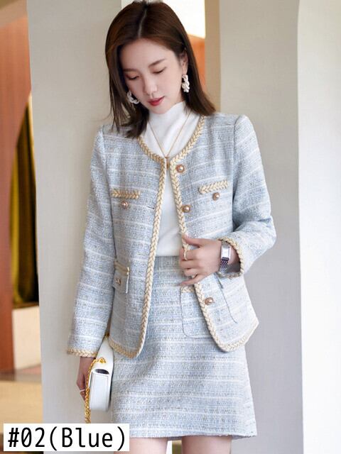 秋冬小さ香りツイード 2 点セット衣装ジャケットコート + スカートスーツ OL ツーピースセット ウィンター 冬物