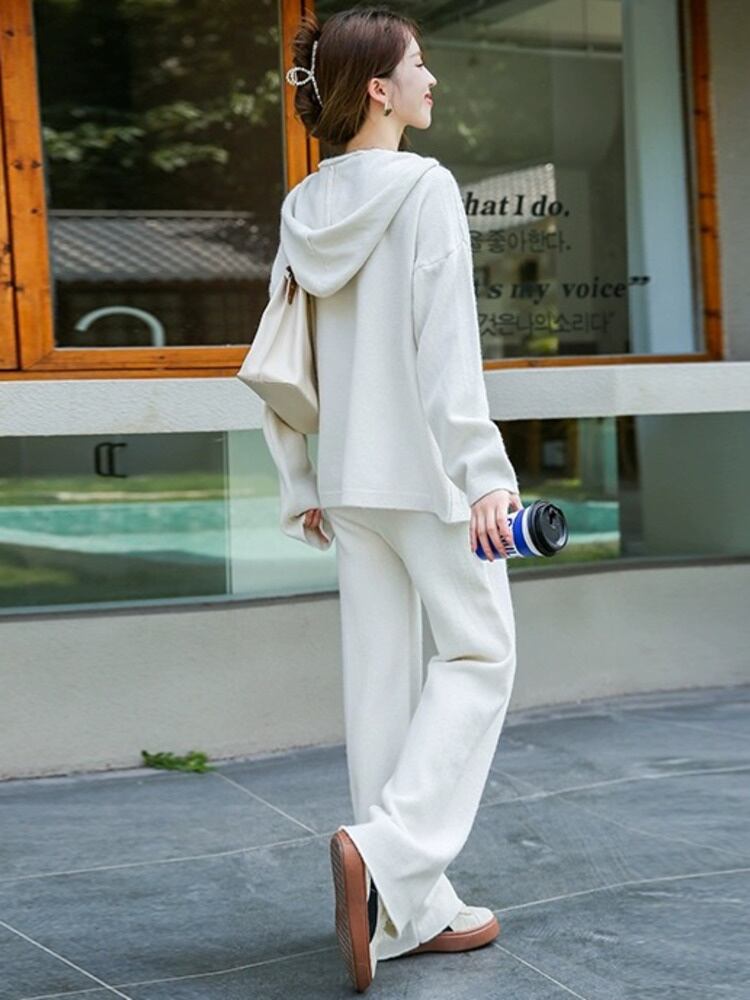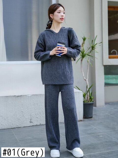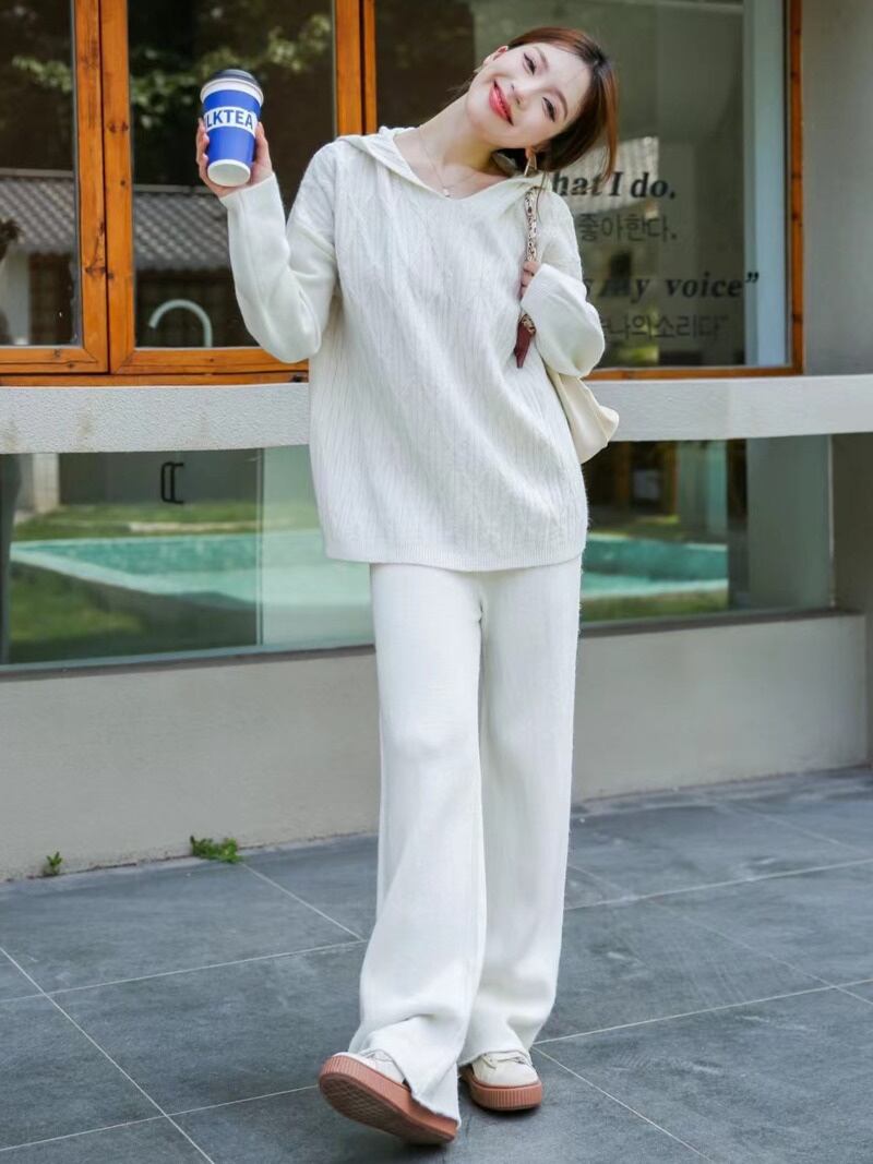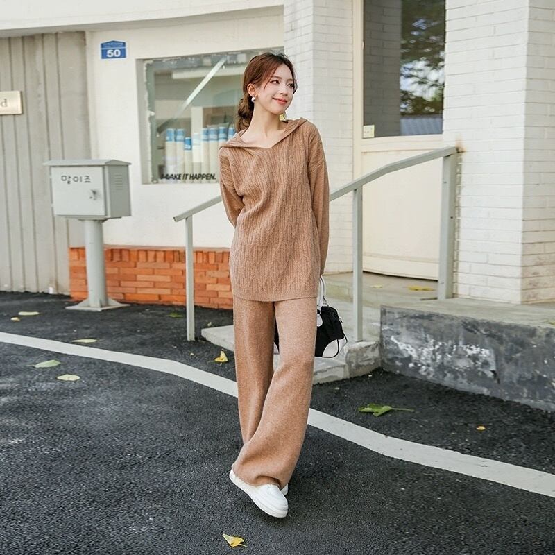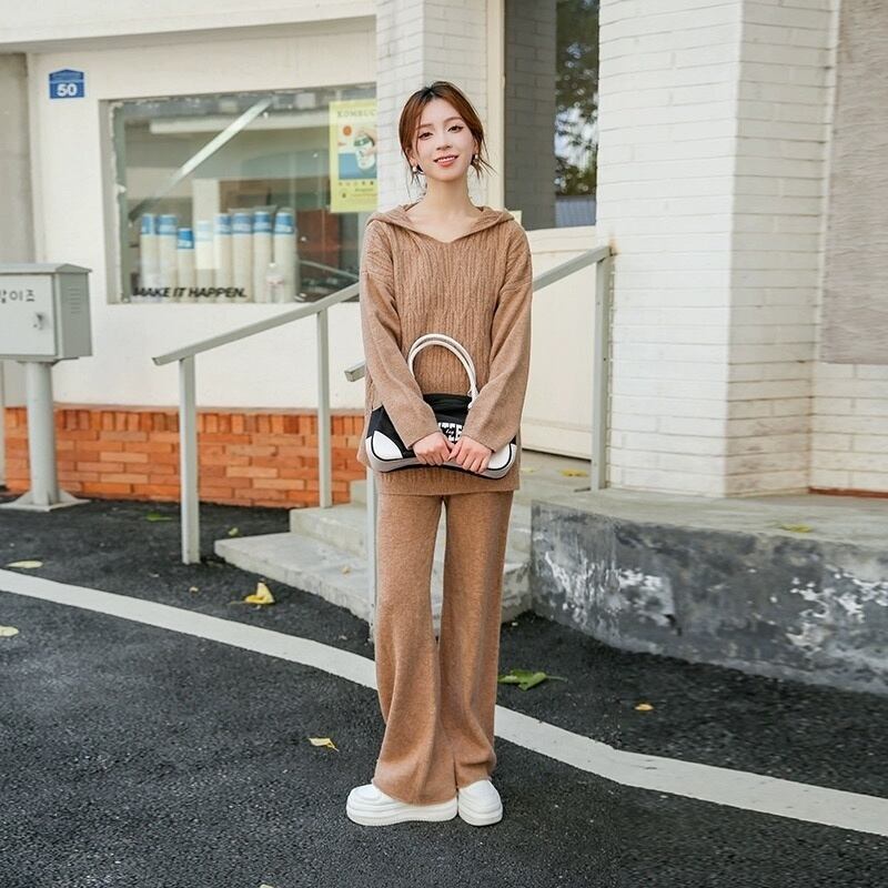 秋冬トップスパンツセットセータートラックスーツ 2 ピースセット衣装ジャージニットプルオーバー conjuntos オータム 秋物 ウィンター 冬物