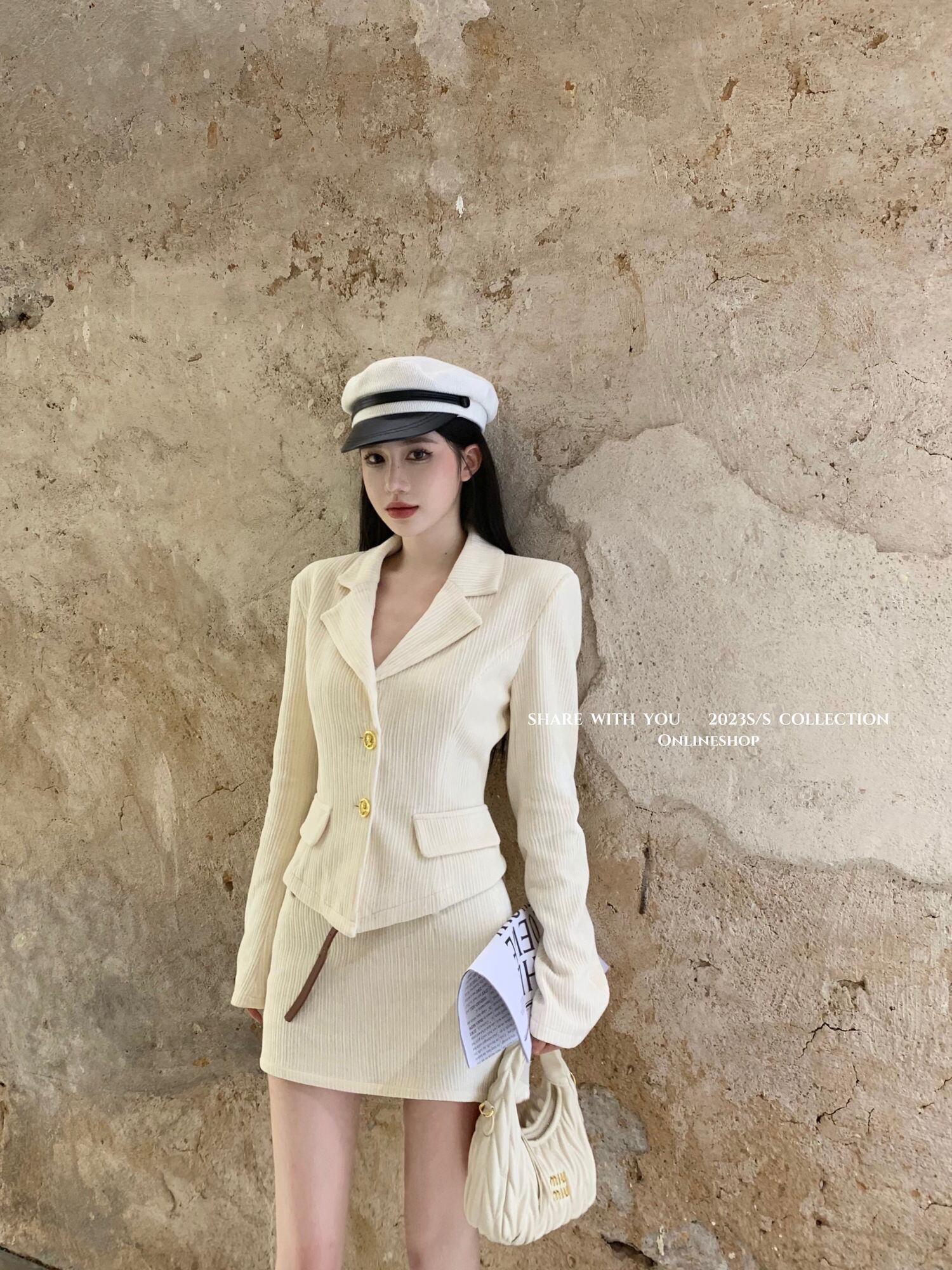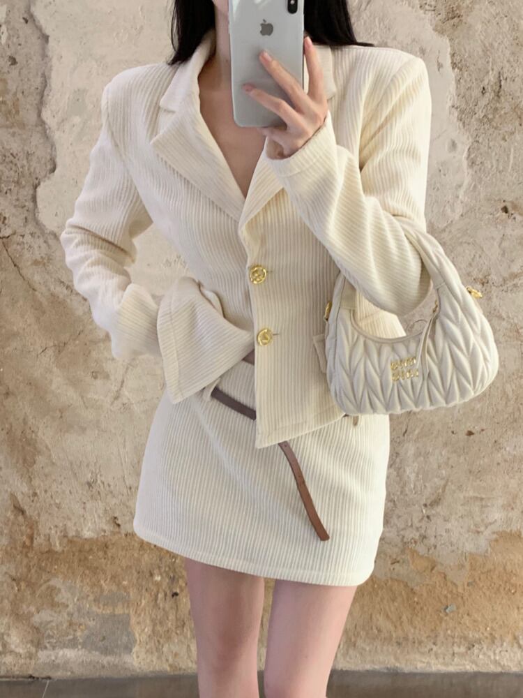 コーデュロイ 2 点セットブレザー コート + スカート セット秋冬 OL 2 点衣装 ウィンター 冬物