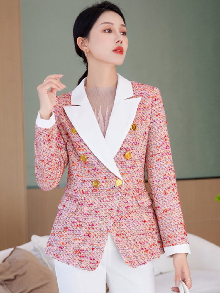 エンドフランス小さ香りツイードブレザーコート秋冬 OL ウールスーツアウター Casaco Feminino オータム 秋物 ウィンター 冬物