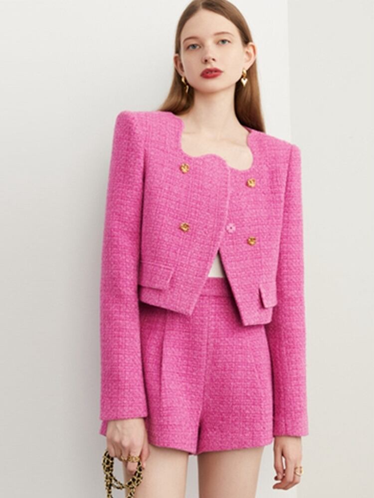 秋冬フレンチスモールフレグランスツイード2ピースパンツセットストリート可能ジャケットコート&ショート2点セット オータム 秋物 ウィンター 冬物