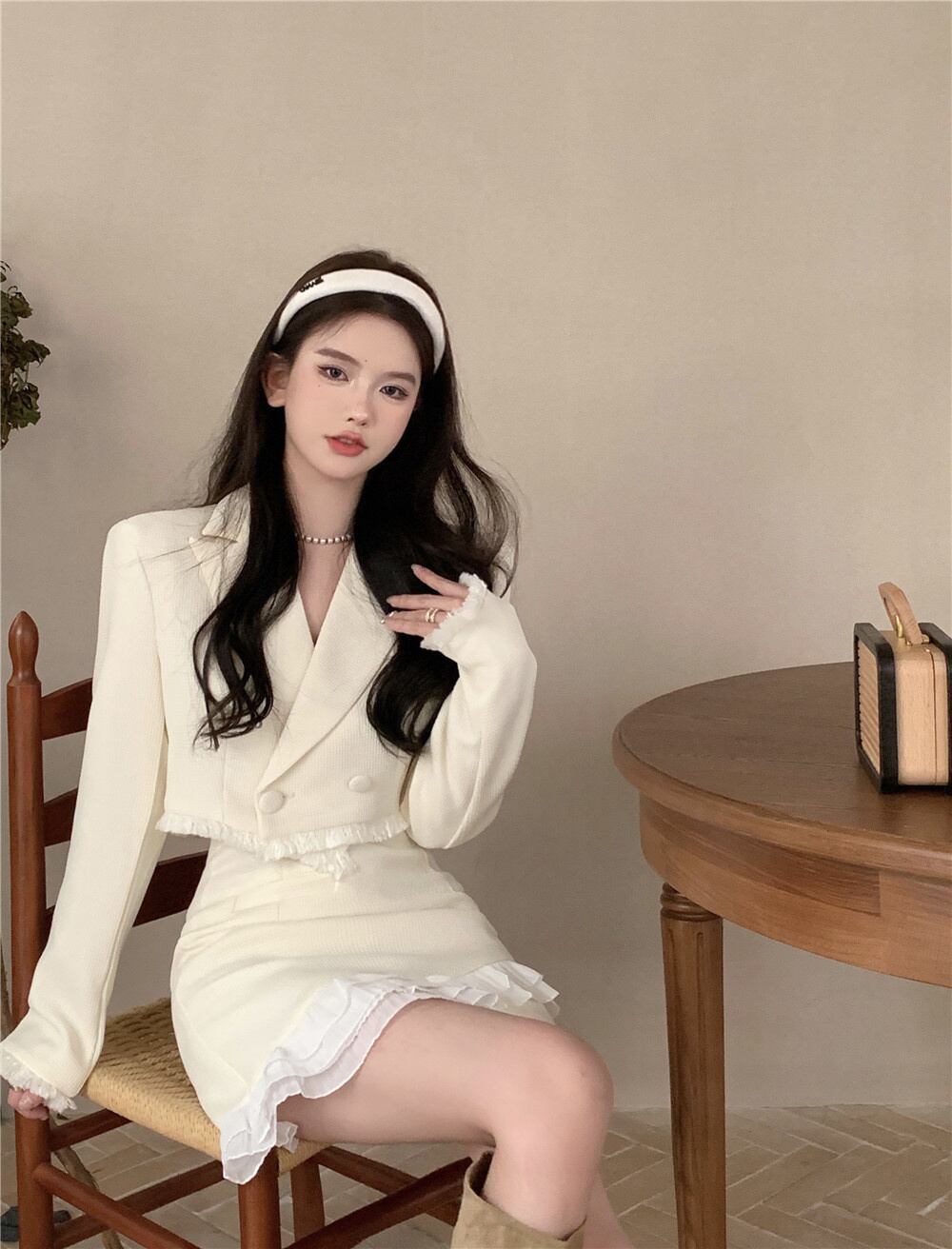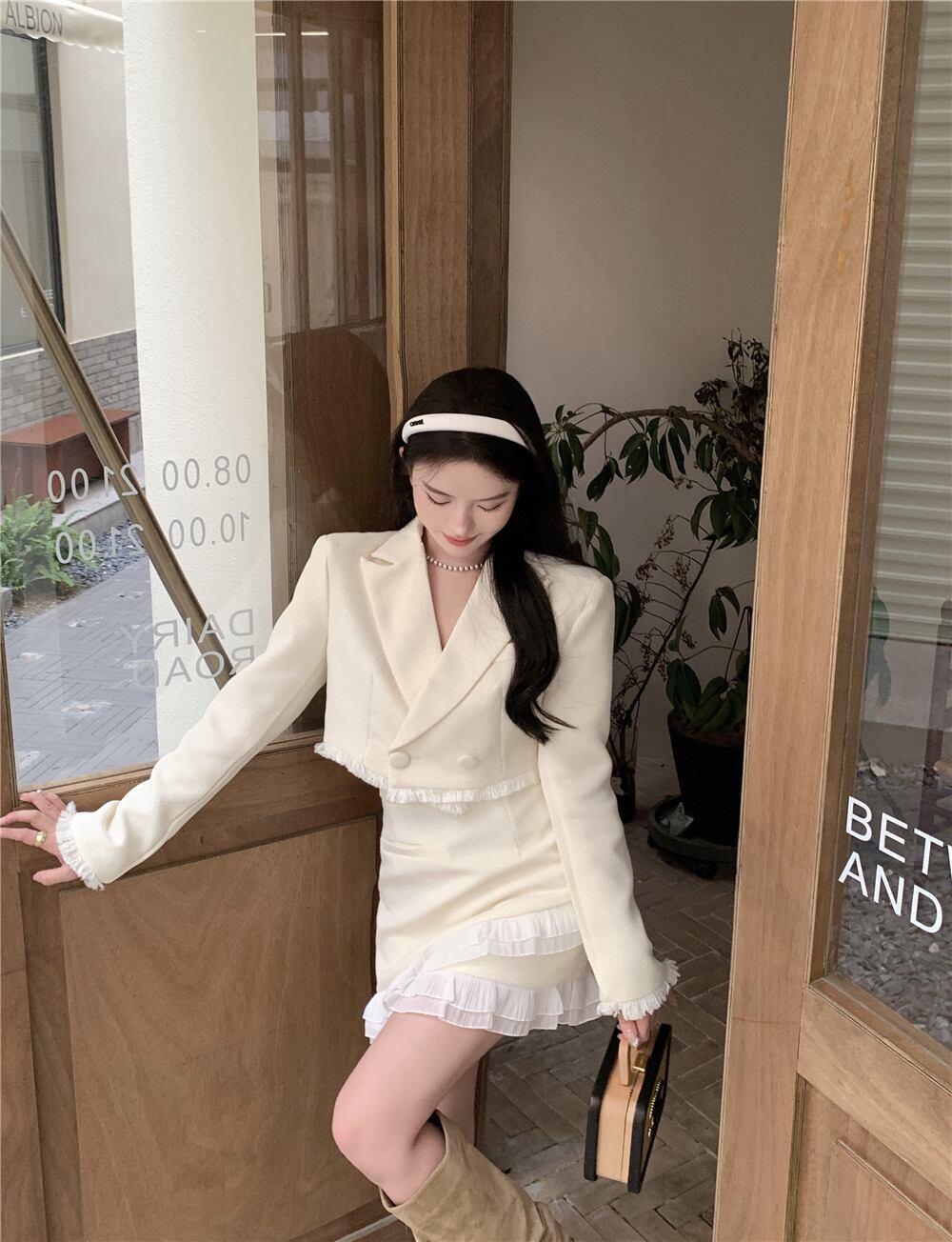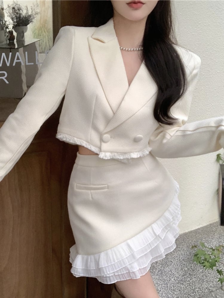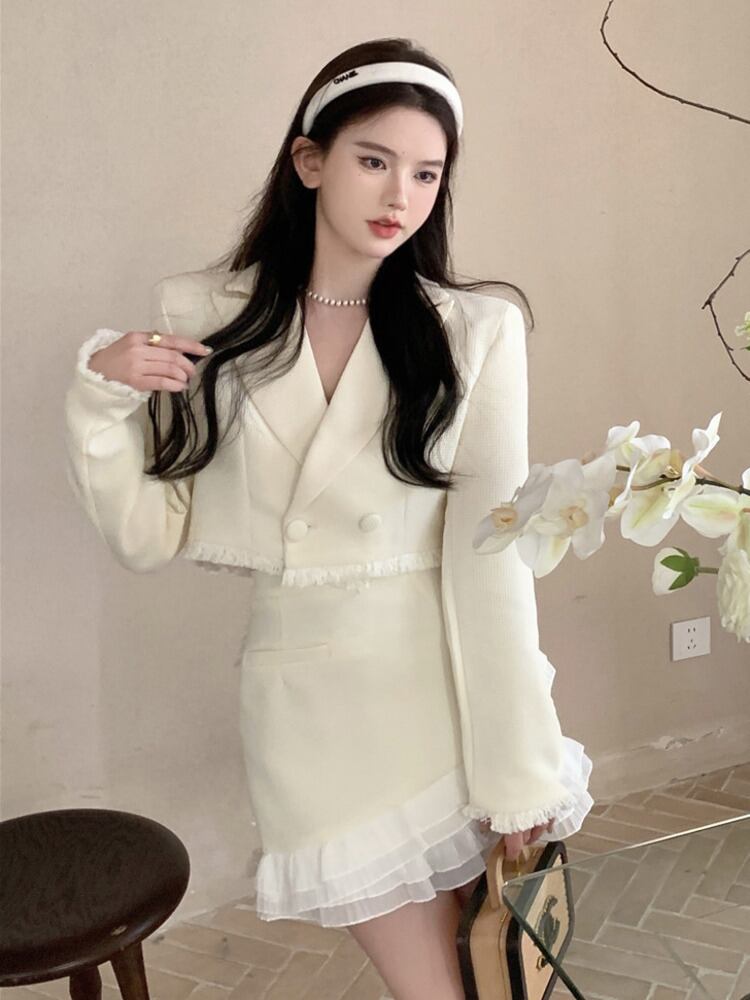 秋小さ香り 2 点セット衣装スイートシックショートジャケットコート + ウエストスカート 2 点セット 大人ガーリー スウィート キュート カジュアル オータム 秋物