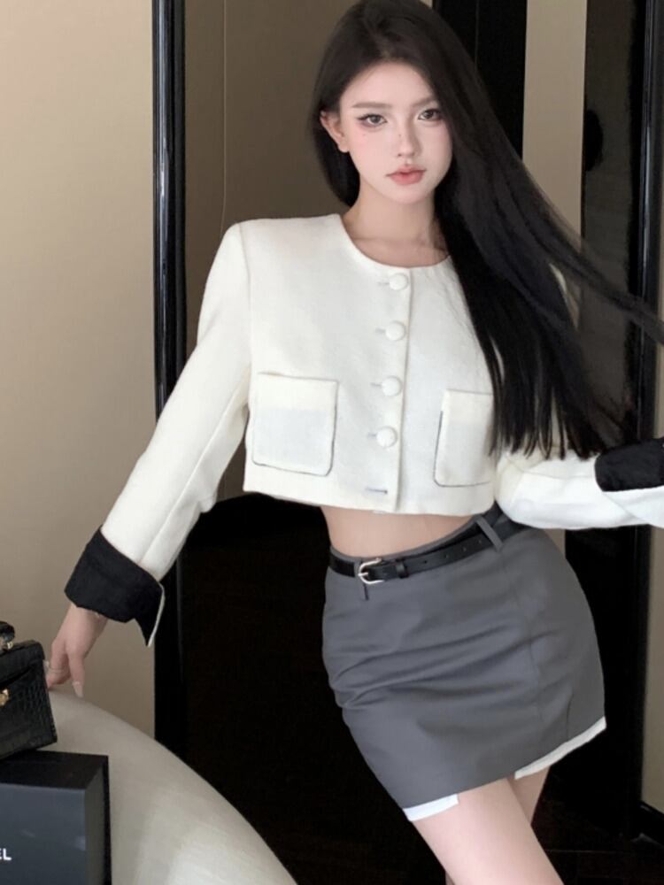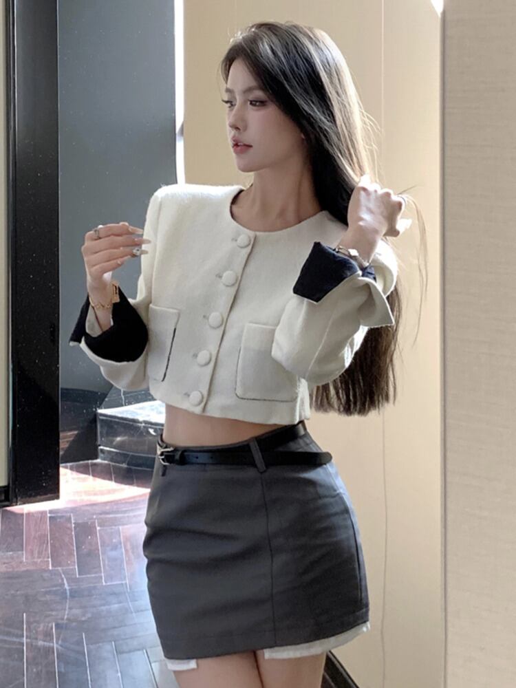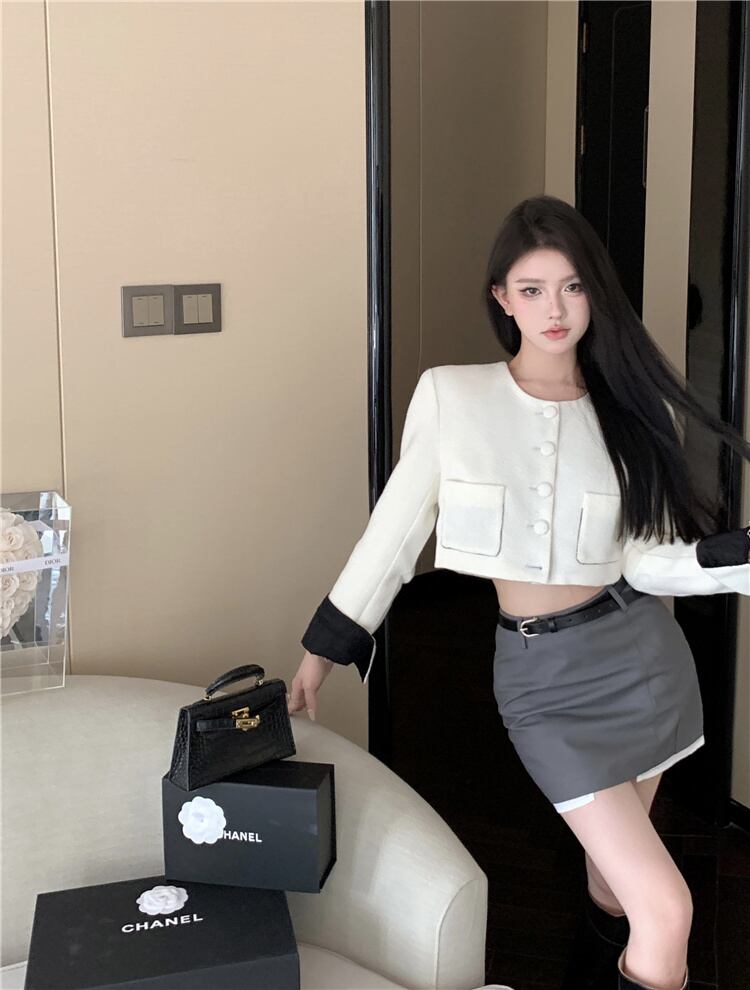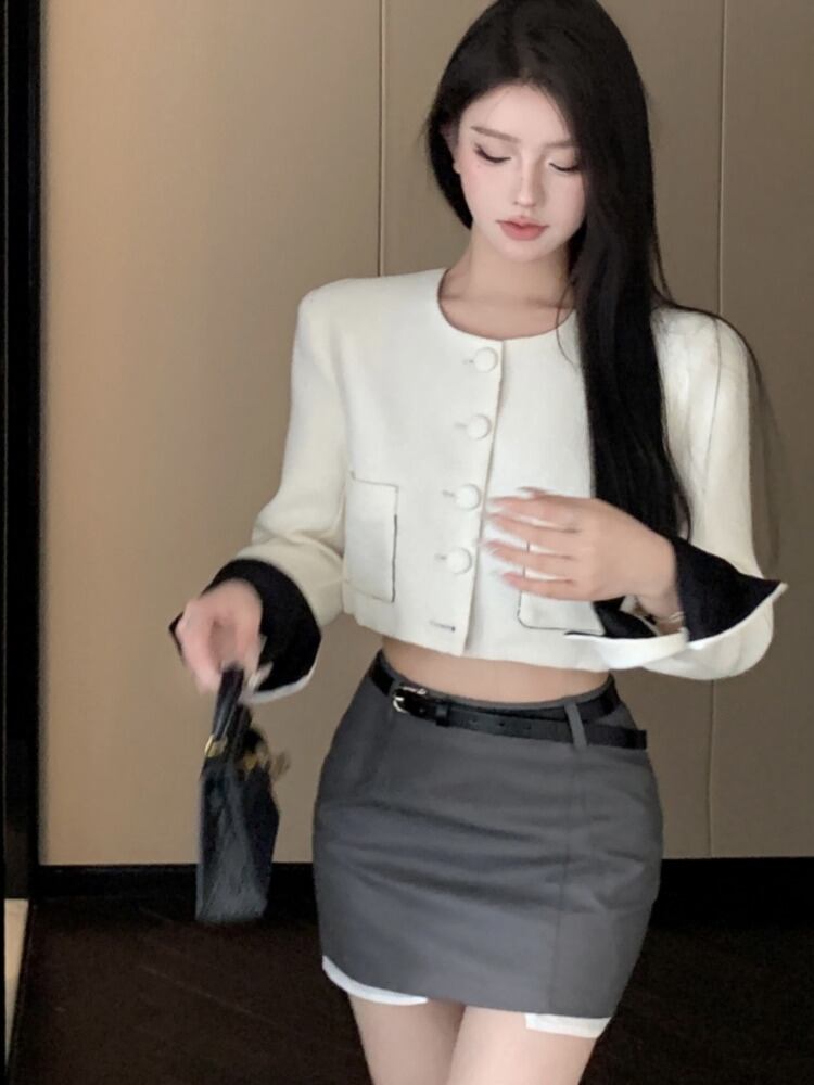 秋冬フレンチスモールフレグランス2点セット衣装ショートジャケットコート+ボディコンスカートツーピーススーツ オータム 秋物 ウィンター 冬物