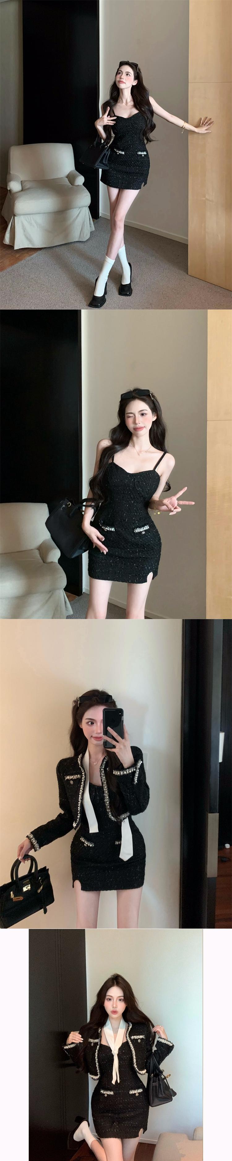 秋ツーピースセットジャケットセクシースパゲッティストラップドレス 2 点セット衣装 conjuntos パラ Vestir エレガンテス Chaquetas エレガント オータム 秋物