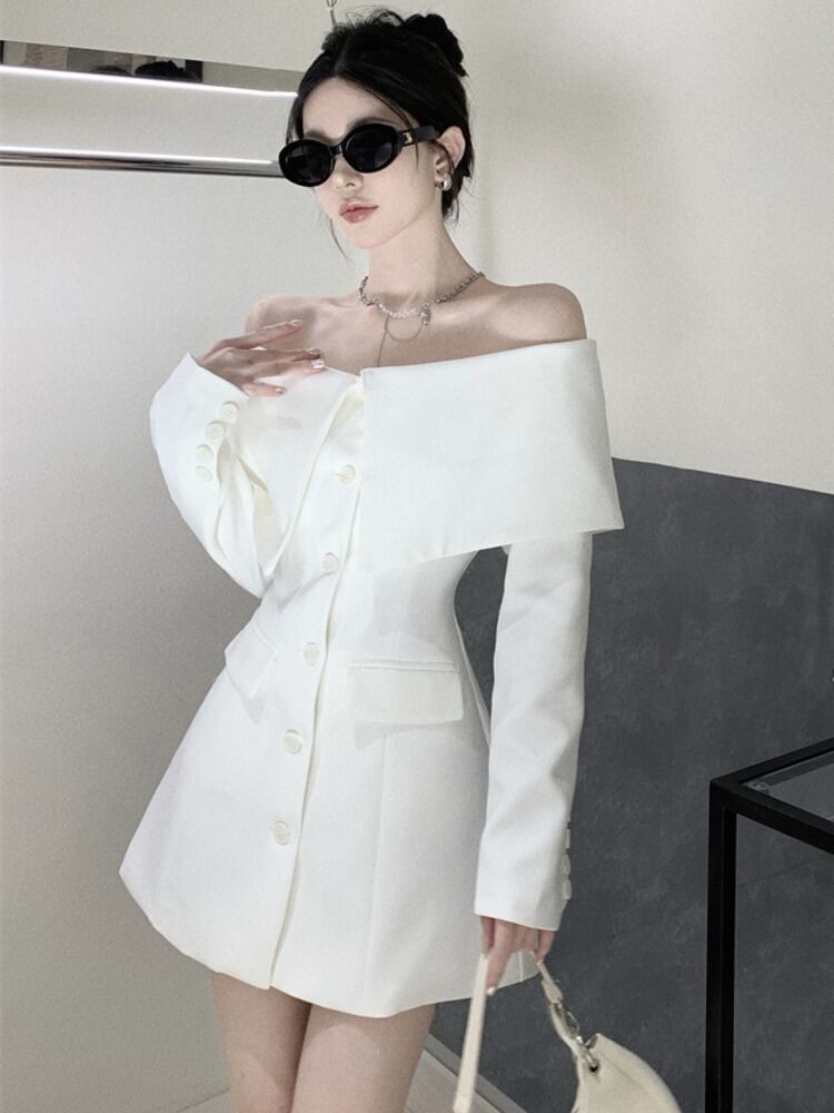 フレンチプリーツ長袖ブレザードレスオフィスレディミニサマードレス Y2k Vestidos ロング 夏物 会社 学校 通勤や通学にも