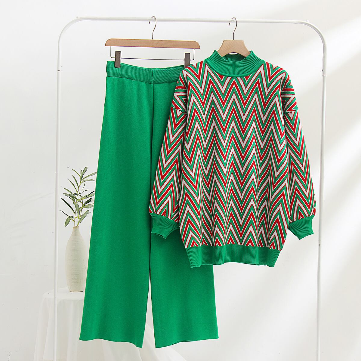 ヨーロッパ小さフレグランス 2 点セットジャカードセーター + パンツセット秋冬ニット 2 ピーススーツ ウィンター 冬物 ヨーロピアン