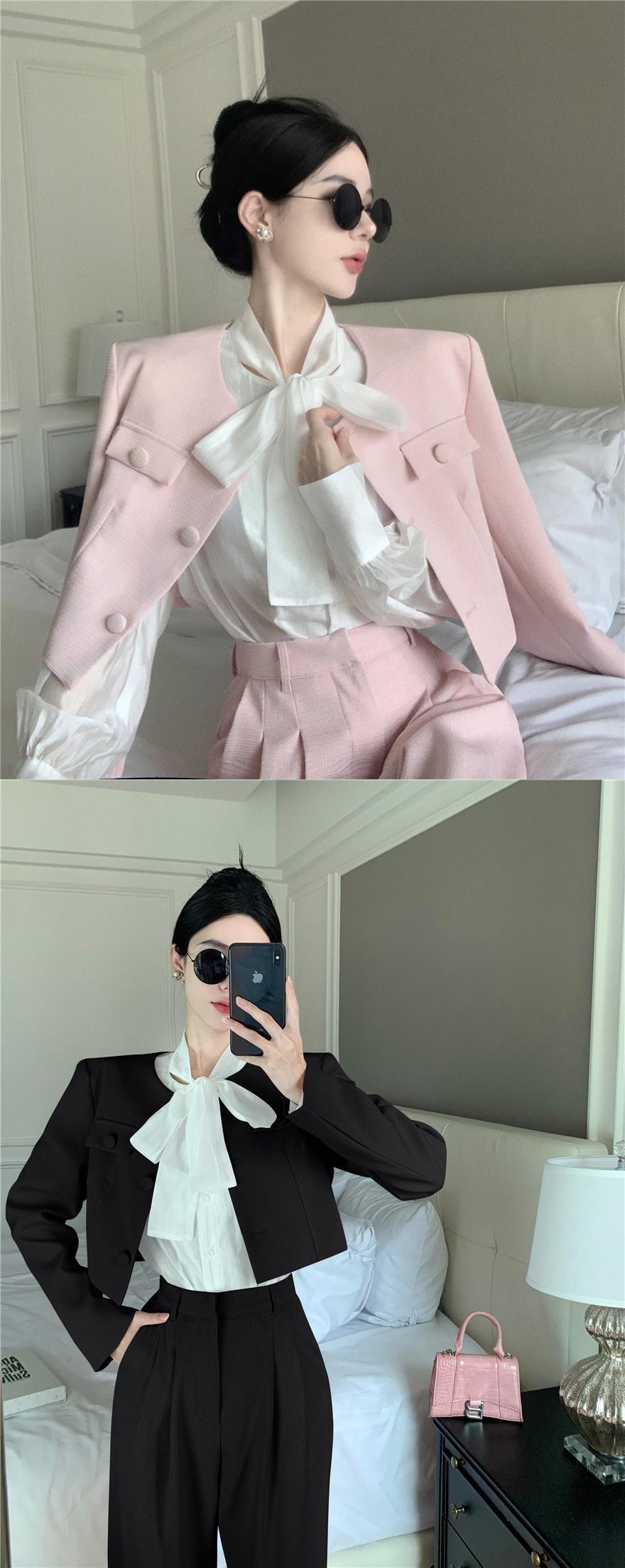秋 conjuntos femininos エレガンテス 2 点セットコートジャケットクロップトップ + パンツオフィスレディ 2 点セット衣装 エレガント 会社 学校 通勤や通学にも