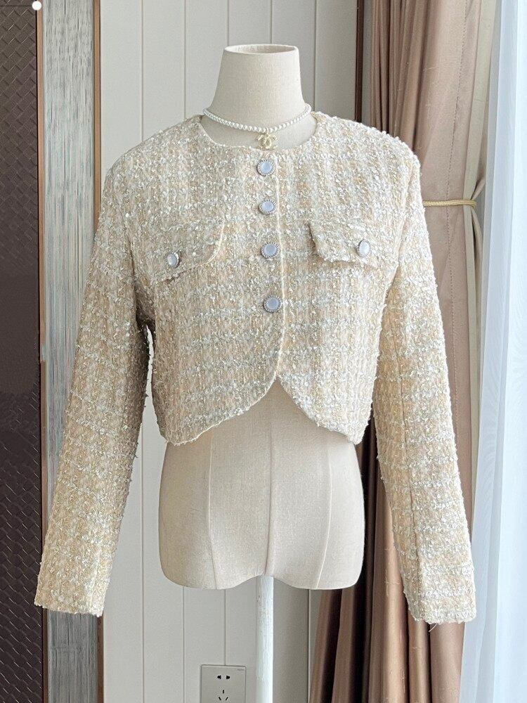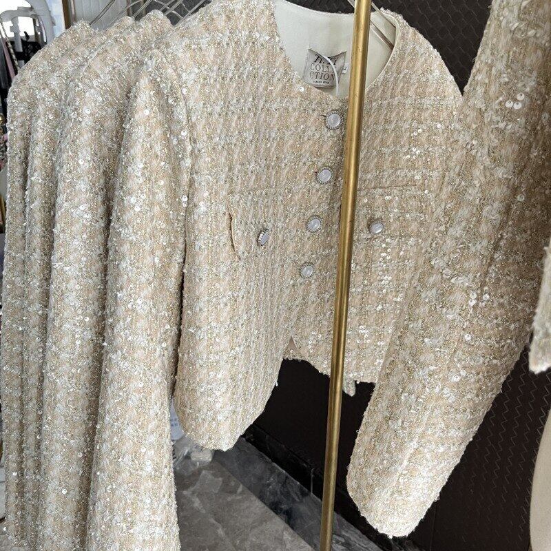 フランス高級小さ香りツイードジャケット秋冬フライドストリートウールショートコートチェック柄アウター オータム 秋物 ウィンター 冬物