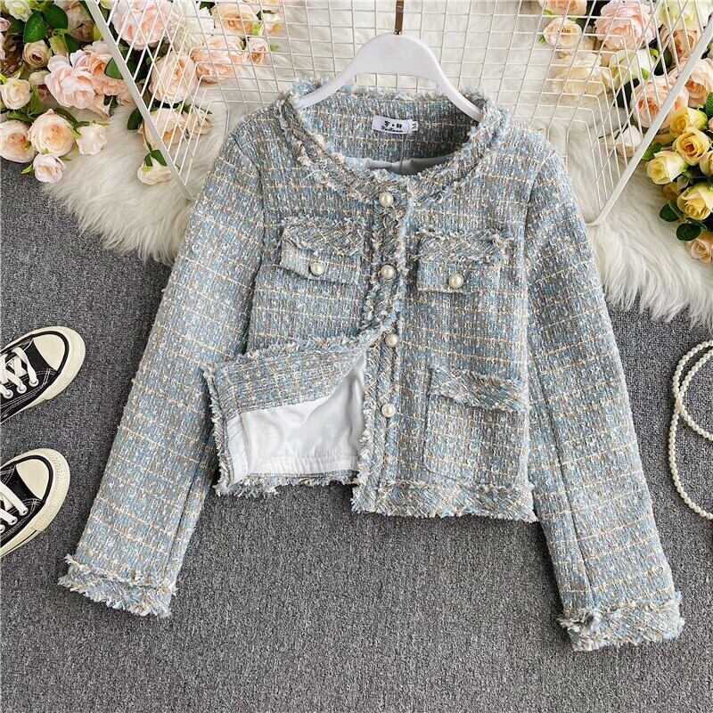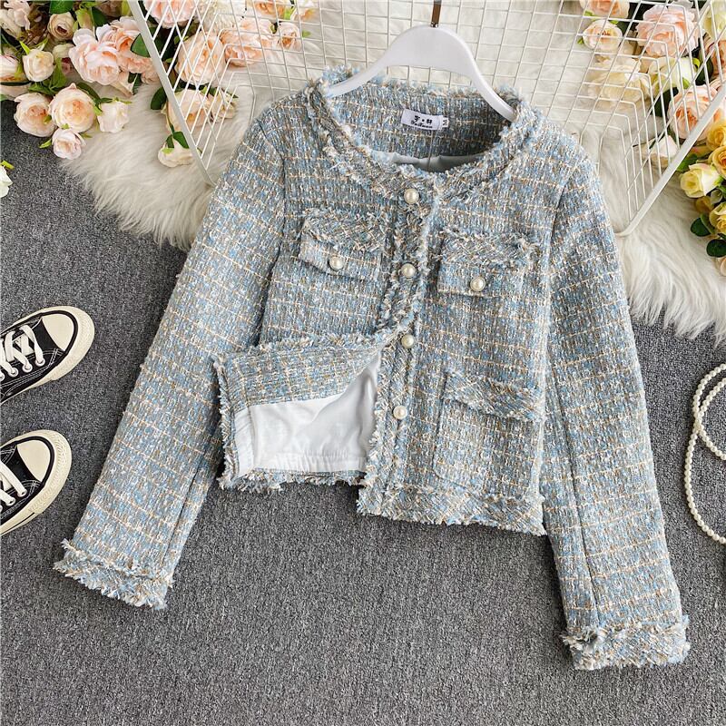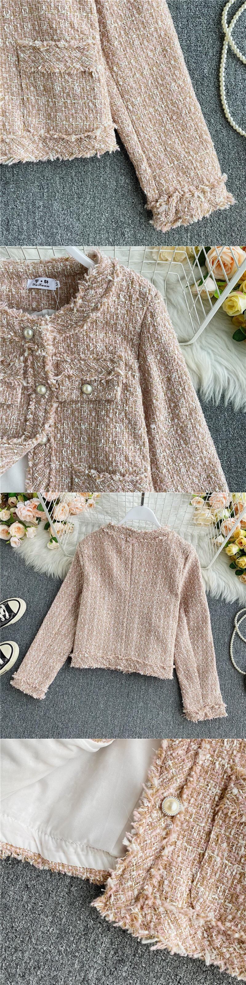 秋冬コートツイードジャケット小さ香りパッチワークショートウール生き抜く オータム 秋物 ウィンター 冬物