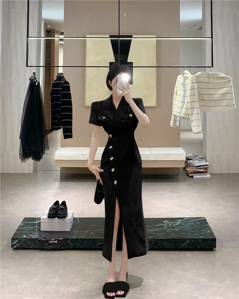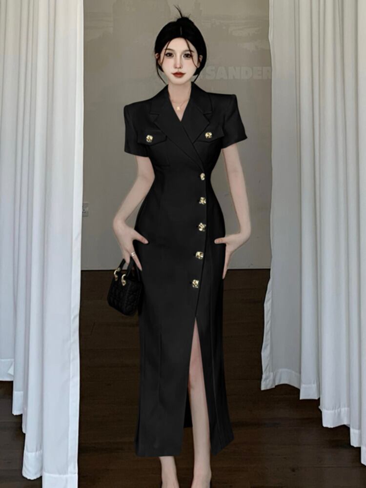 スモールフレグランスパーティードレスフレンチ長袖スリムウエストロングドレスOL Vestidos