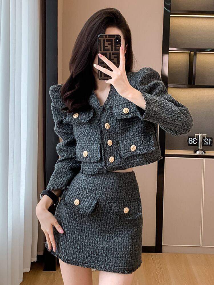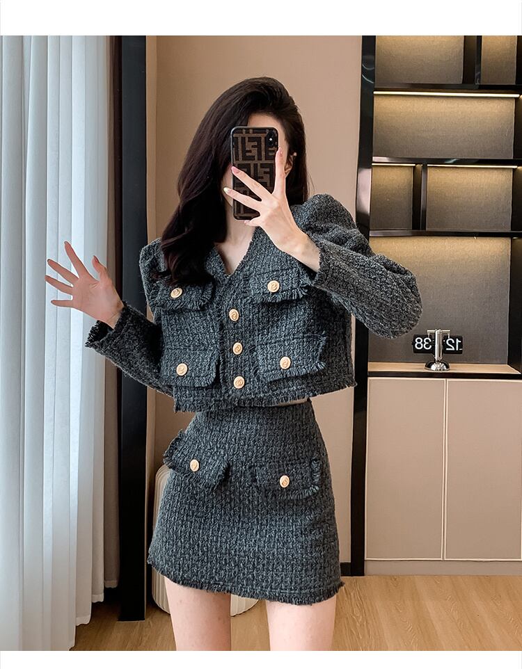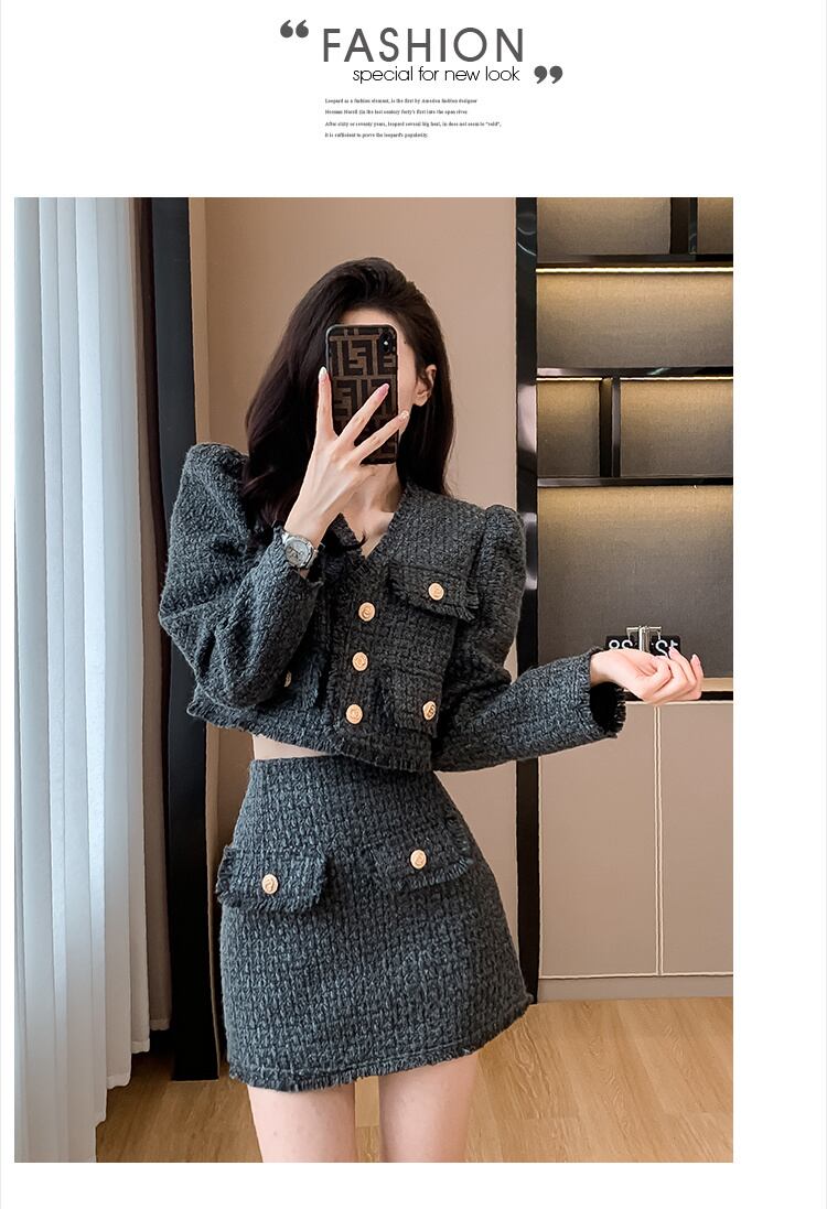 フレンチスモールフレグランスツーピースセット秋冬ショートジャケットコート+スカート2点衣装 オータム 秋物 ウィンター 冬物
