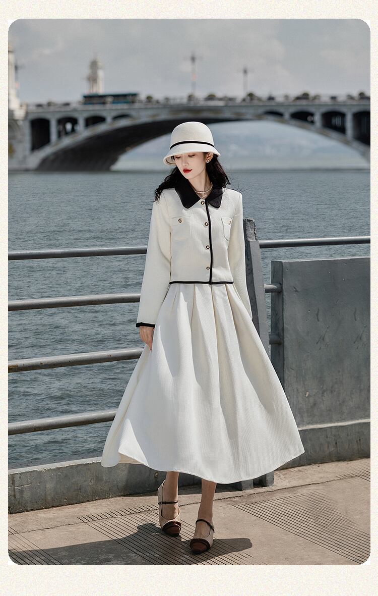 フランス小さ香りツーピースセットジャケットコート + ロングスカートセット秋 2 ピース衣装