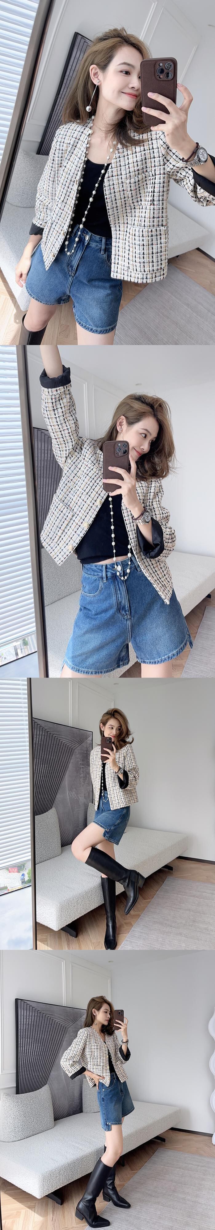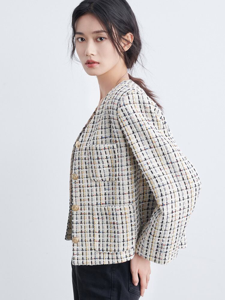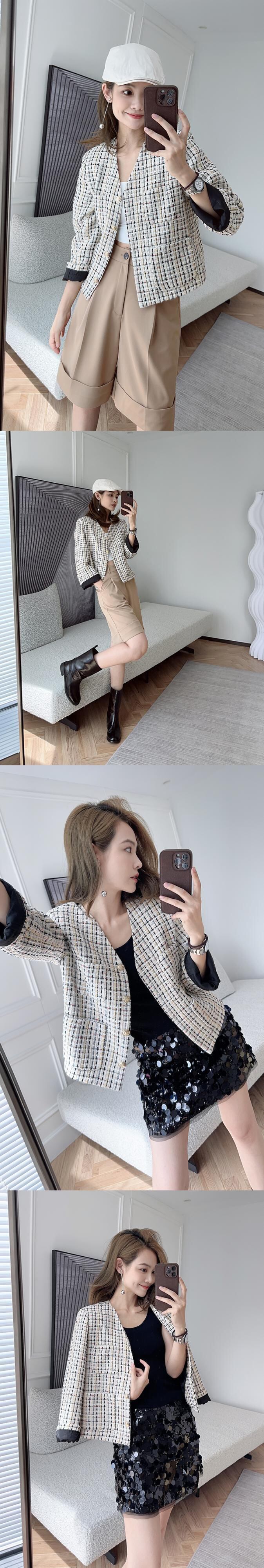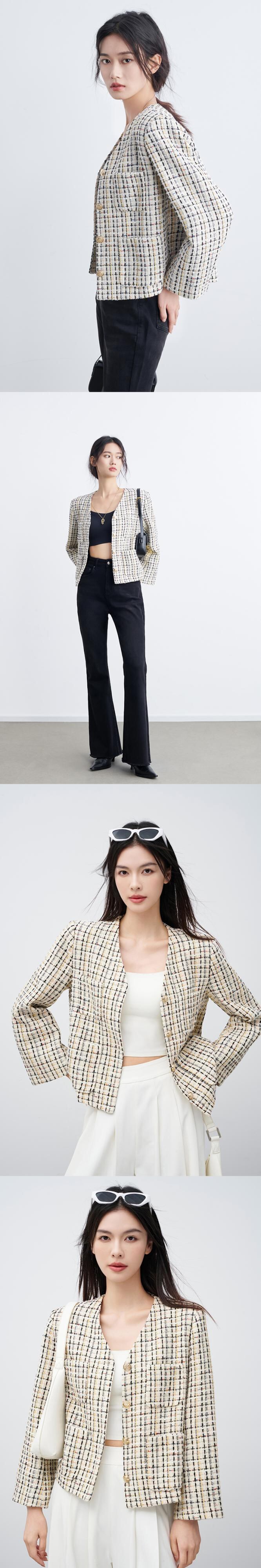 フランス小さ香りツイードジャケットウールショートコート高級滑走路生き抜く Casaco
