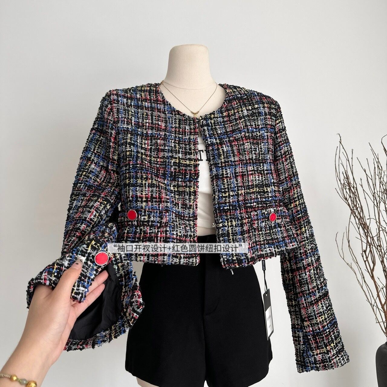 ストリート高級小さフレグランツイードジャケット秋冬フレンチショートコートウールアウター Chaquetas ウィンター 冬物