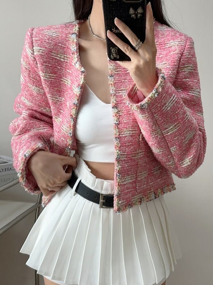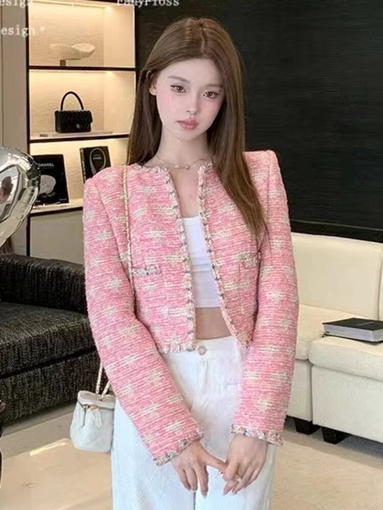 フランス高級スモールフレグランスツイードジャケット秋冬甘いショートコートアウター 大人ガーリー スウィート キュート カジュアル オータム 秋物 ウィンター 冬物