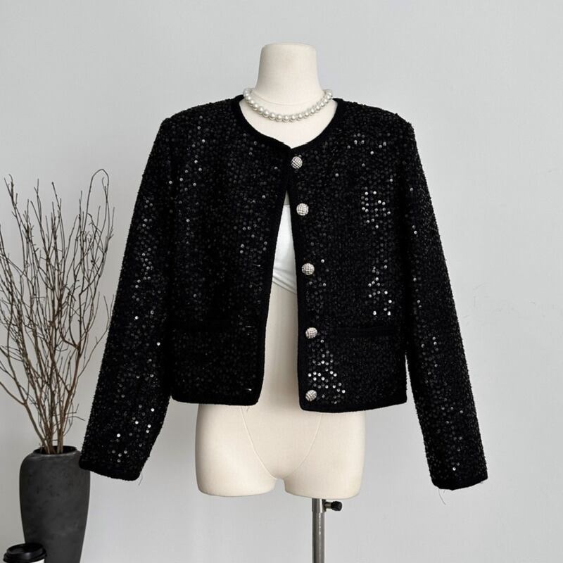 秋冬フランス高級スパンコール小さフレグランスツイードコート Y2K ストリートジャケット生き抜く Chaquetas オータム 秋物 ウィンター 冬物
