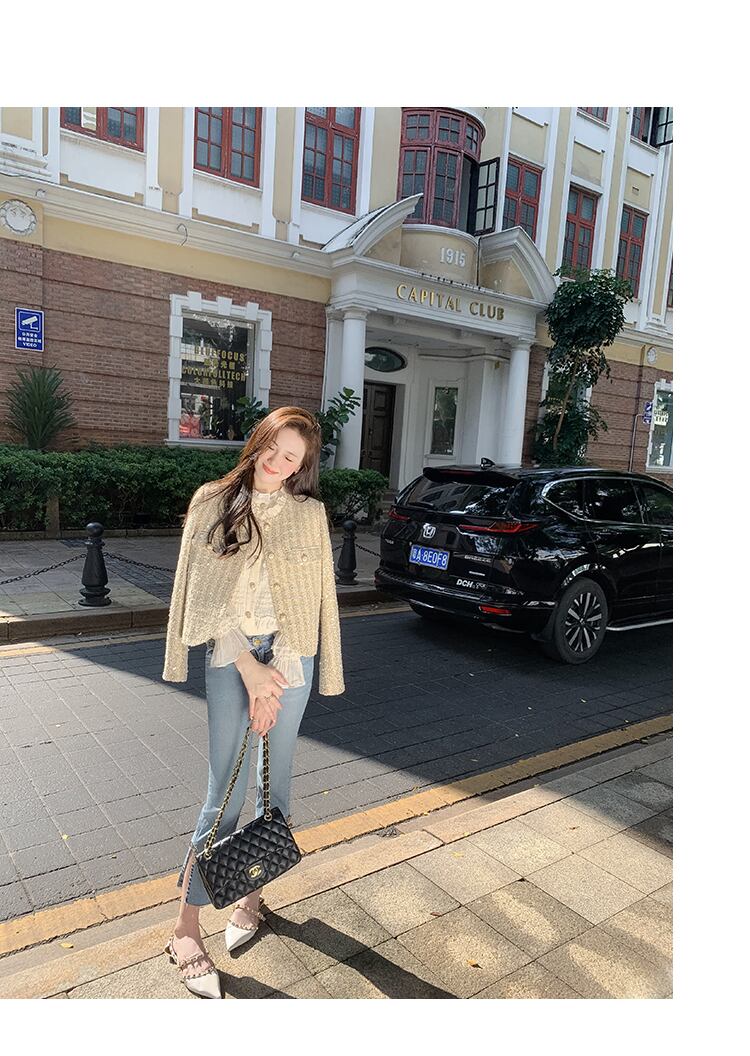 フランス小さフレグランスツイードジャケット秋冬 Y2K ストリートショートコートスパンコール Casaco オータム 秋物 ウィンター 冬物