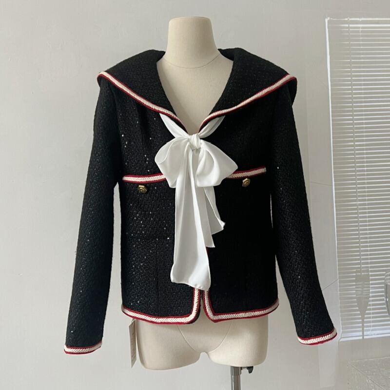 フレンチスモールフレグランスコート秋冬プレッピースタイルツイードジャケットウールアウター ウィンター 冬物