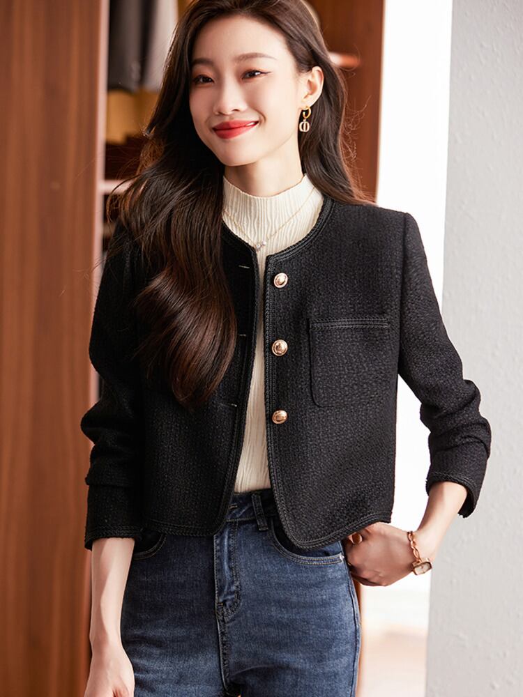 フレンチスモールフレグランスツイードジャケット秋冬OLショートブレザーコート高級アウター ウィンター 冬物